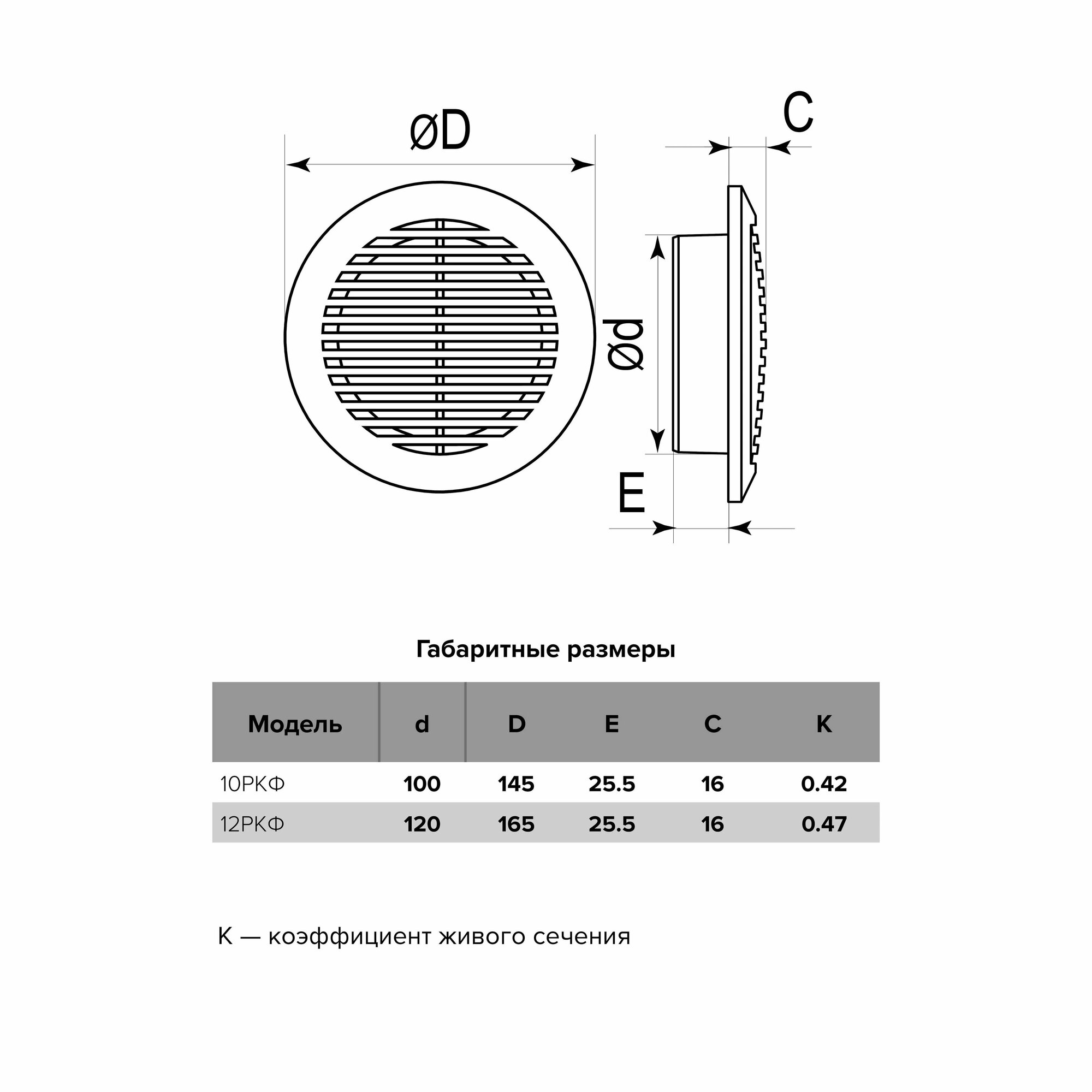 10РКФ, Решетка вентиляционная круглая D145 вытяжная АБС с фланцем D100