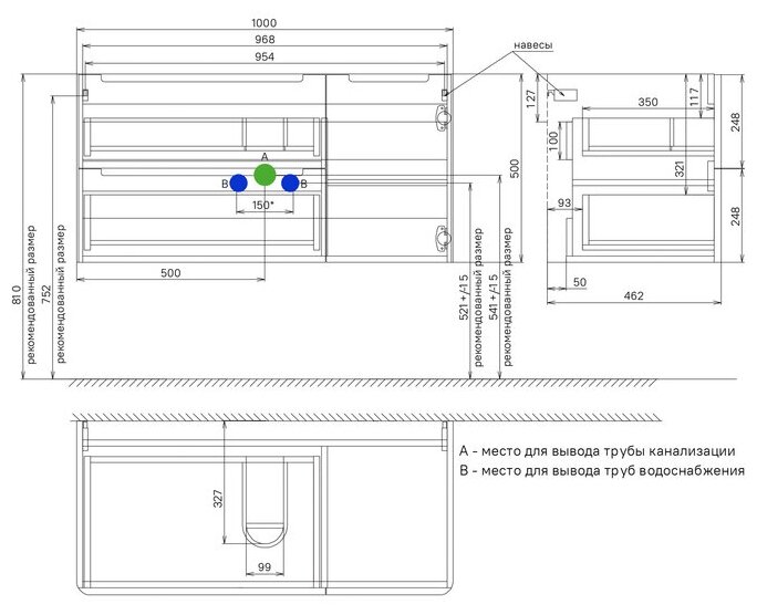 | Минусы: | К данной тумбе с раковиной подходит только маленький сифон, будьте внимательны |