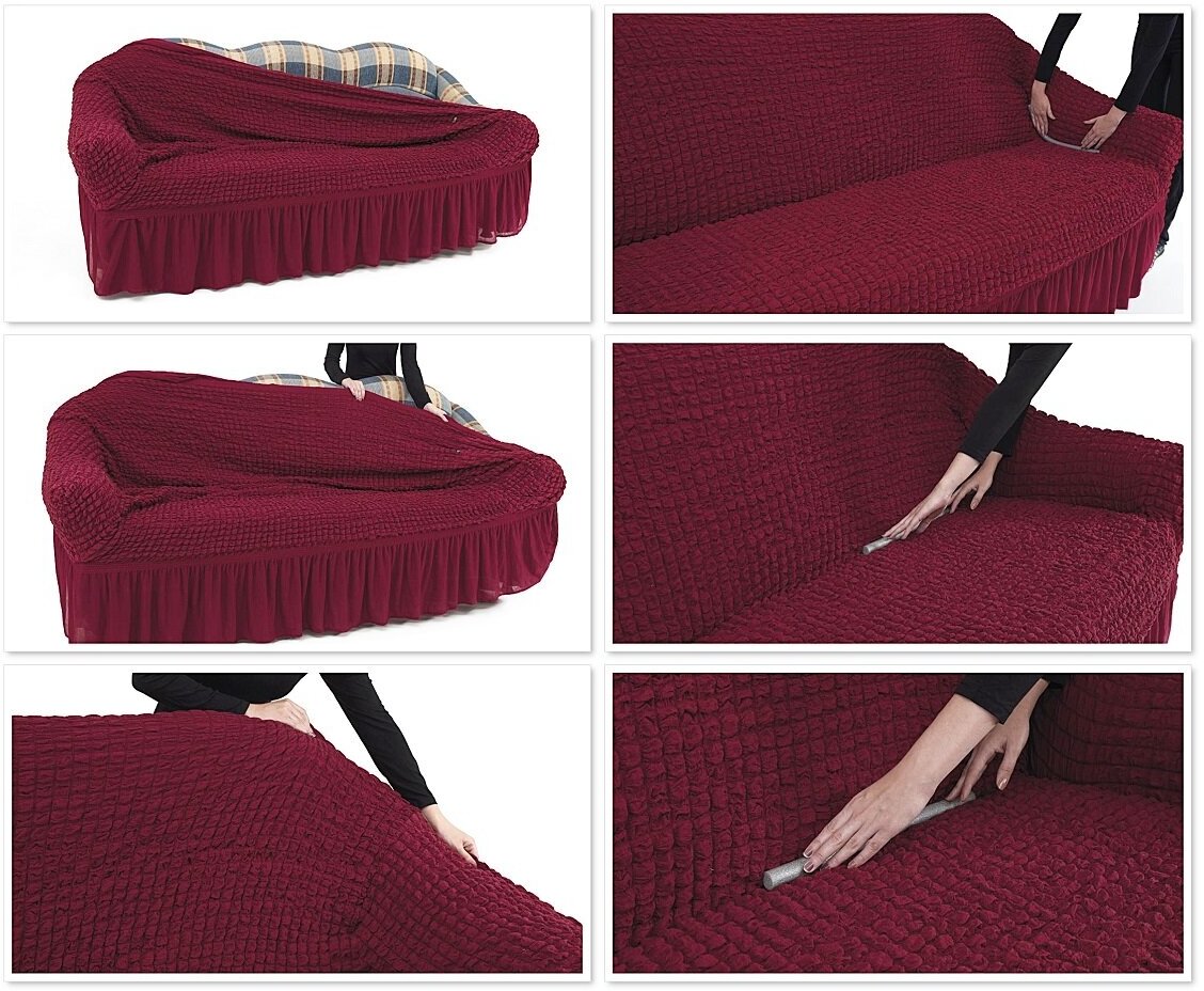 Чехол на двухместный диван на резинке Bulsan с юбкой - Карминный