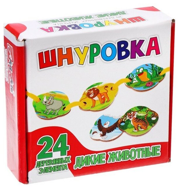 Игра-шнуровка Анданте, Дикие животные, 24 элемента, 1 набор