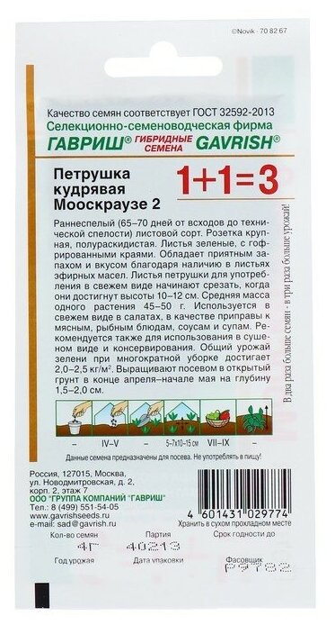 Семена Гавриш 1+1=3 Петрушка кудрявая Мооскраузе 2 ( вес : 4 г)