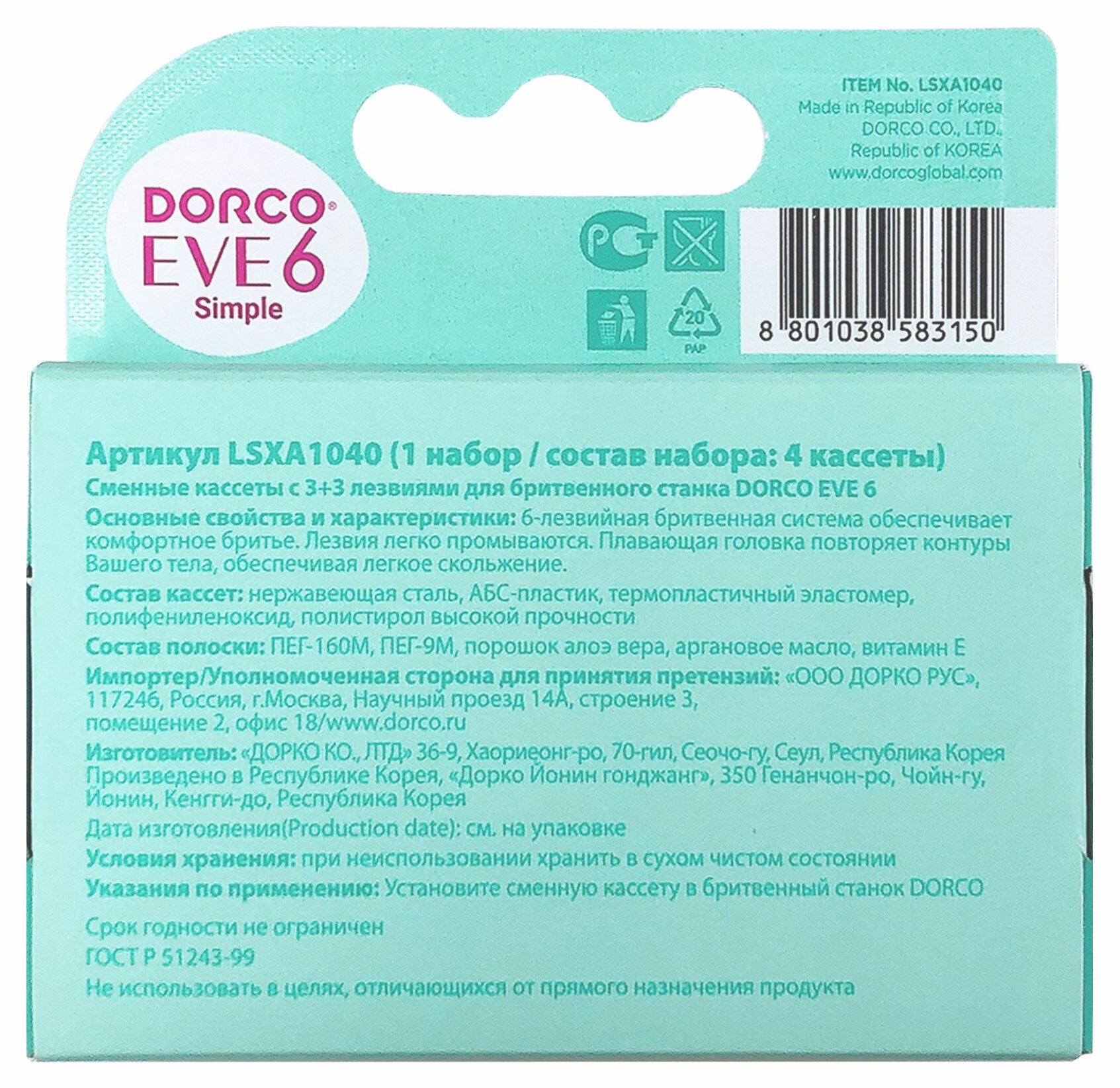 Dorco Eve 6 Simple Сменные кассеты для женского бритвенного станка с 6 лезвиями и сгибаемым картриджем 4 шт