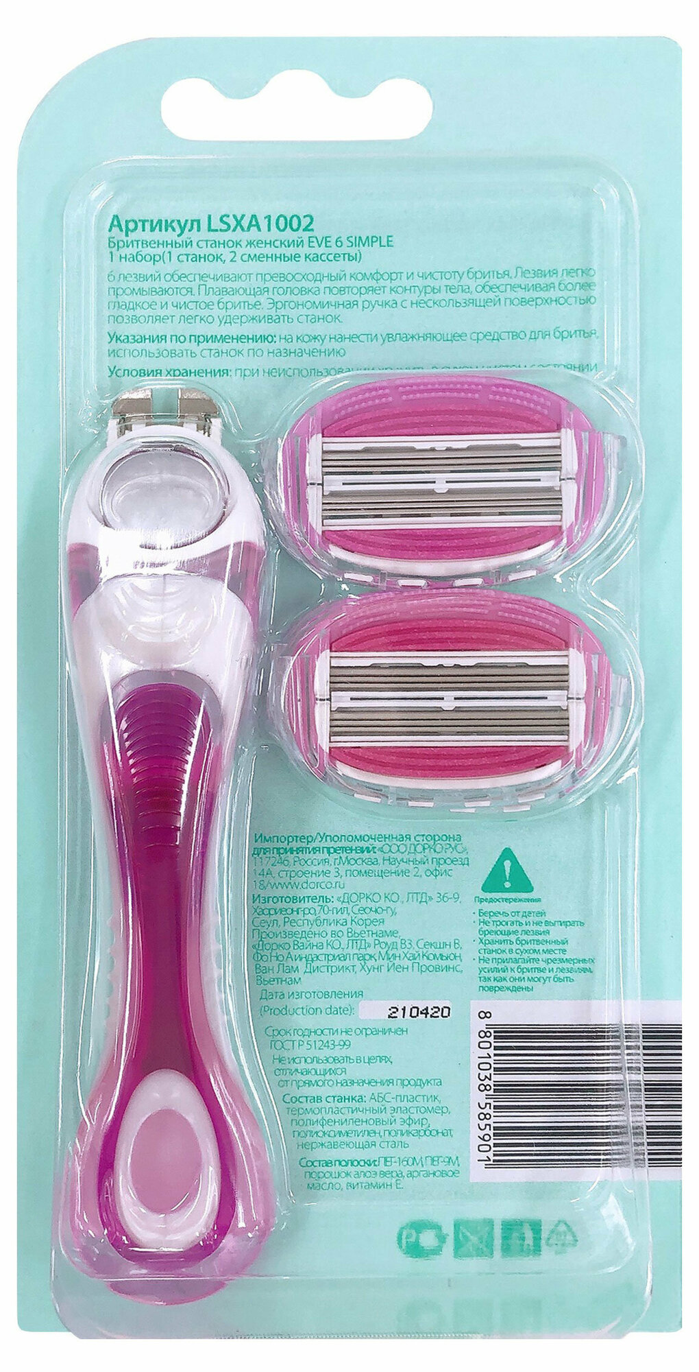 Купить Набор женский Dorco EVE6 4 кассеты, 6 лезвий 3+3 6254734
