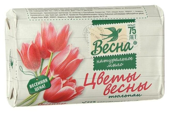 Весна 6167 Мыло туалетное Весна Цветы весны Тюльпан 90 г интересное: