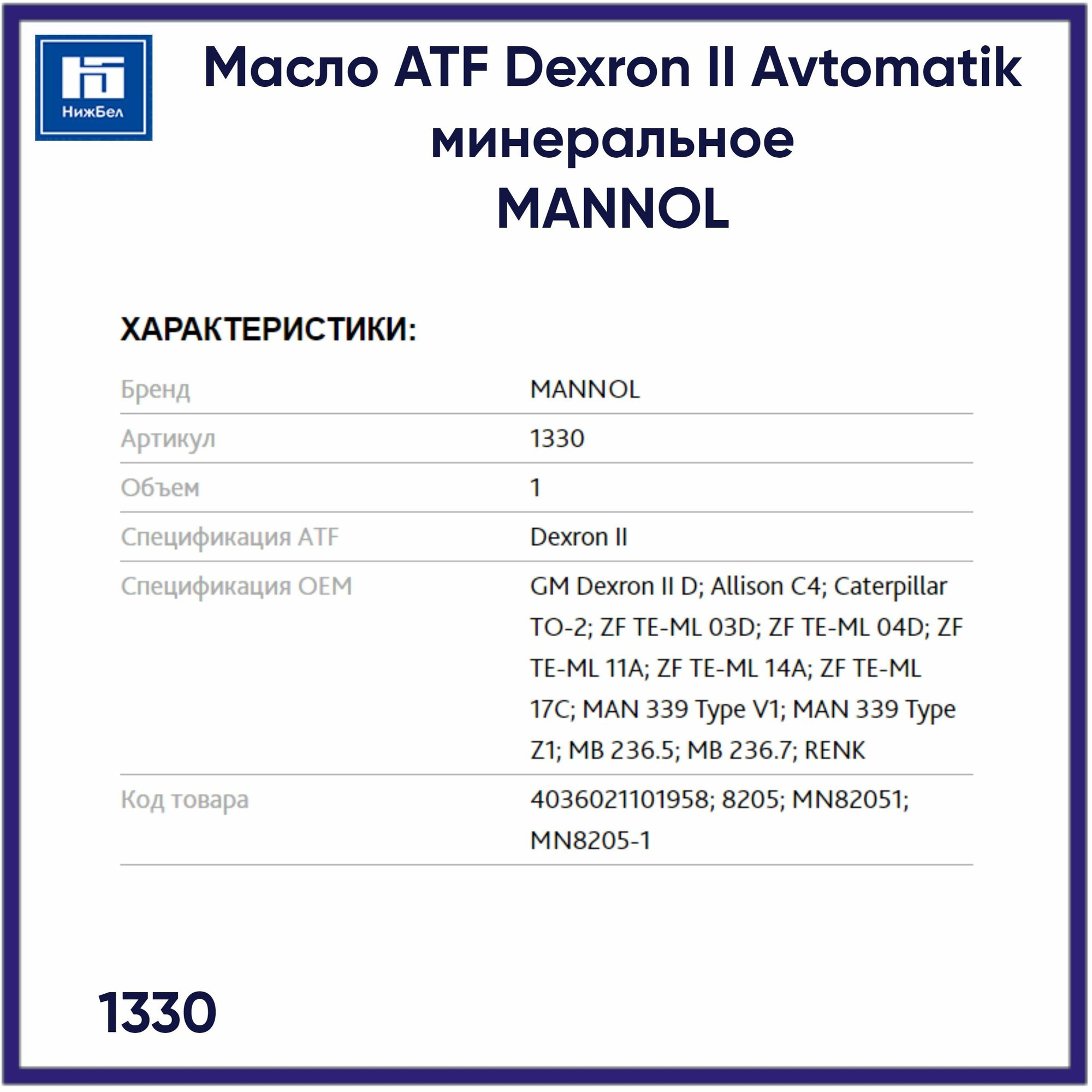 Масло трансмиccионное Mannol 8205 ATF Dexron II Automatic 1L, 1330