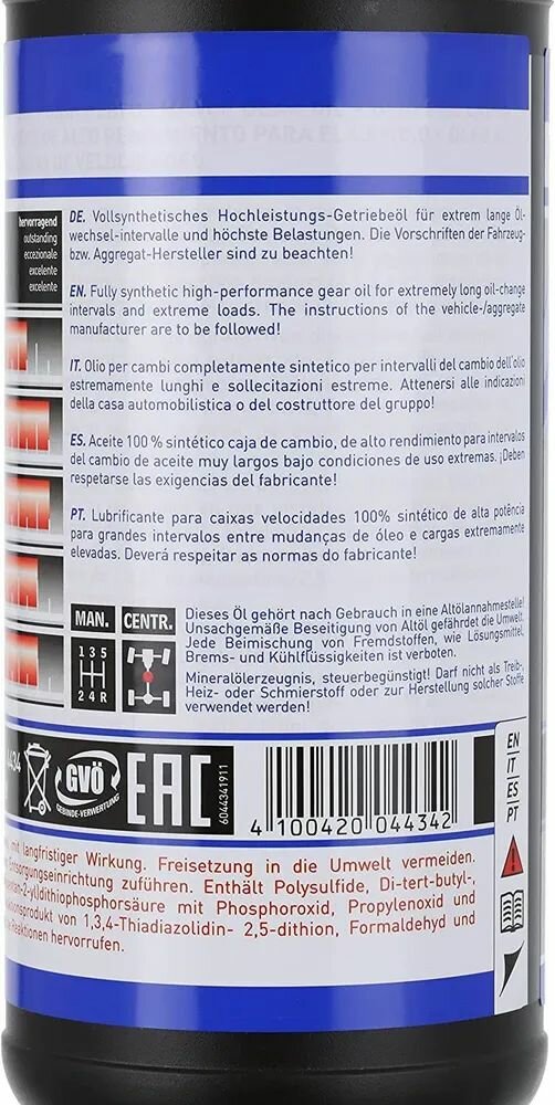 75W-90 Hochleistungs-Getriebeoil GL4+ 1л (синт.транс.масло)