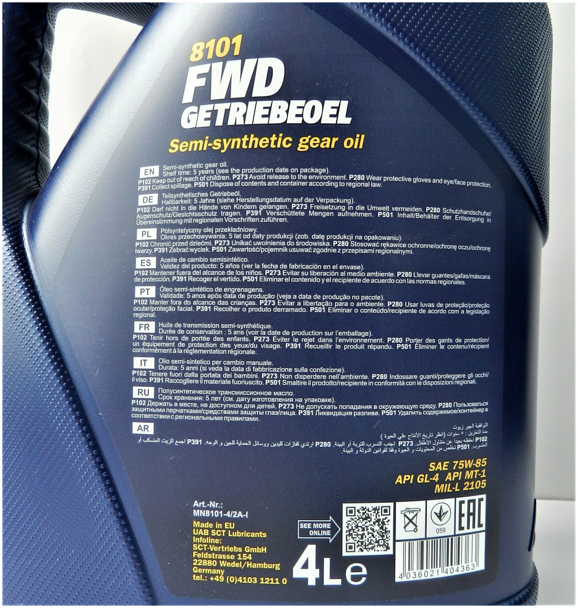 MANNOL MN8101-4 8101-4 MANNOL FWD GETRIEBEOEL 75W85 Полусинтетическое трансмиссионное масло 75W-85 GL-4 4л 1шт