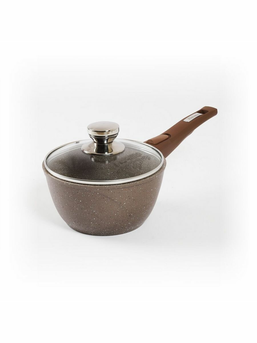 Ковш 1,2л мечта Антипригарное покрытие Гранит со съемной ручкой и стеклянной крышкой brown арт. 081806
