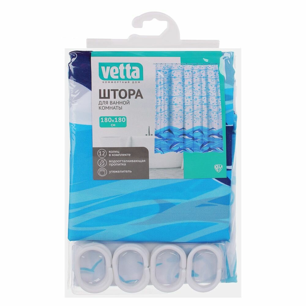 Шторка для ванной VETTA, ткань полиэстер с утяжелит, 180x180см, "Дельфины"
