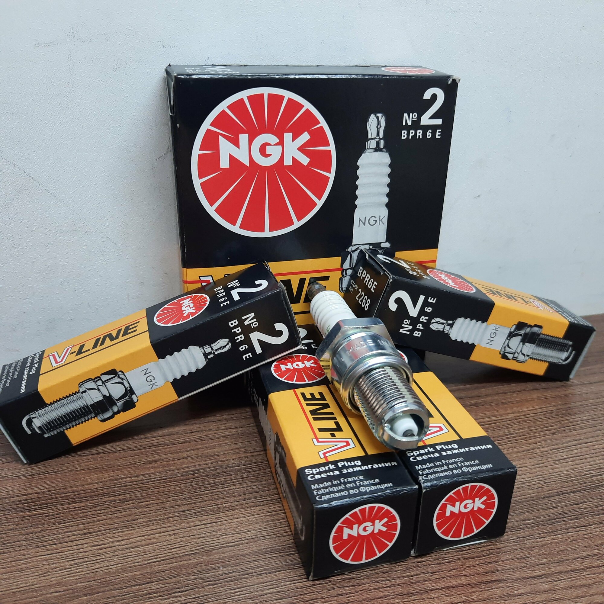 Свечи зажигания V-Line №02 BPR6E 2268 NGK комплект из 4 штук