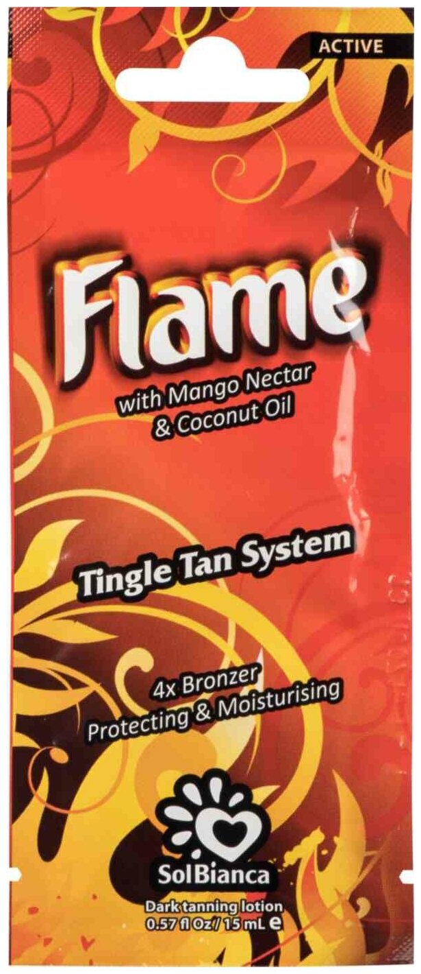 Купить SOLBIANCA Крем для загара в солярии “Flame” Tingle эффект 4х bronzer, 15 мл (с нектаром манго, маслом кокоса)