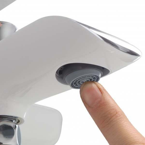 | Дополнительная информация | покрытие белый/хром, керамический картридж Kerox 35 мм, аэратор: Neoperl встроенный пластиковый с функцией регулировки направления потока, дивертор: вытяжной фиксируемый, комплектация: шланг из нержавеющей стали 1,5 м с системами Twist Free и Double Lock, настенный держатель для лейки, лейка для душа (3 режима) |