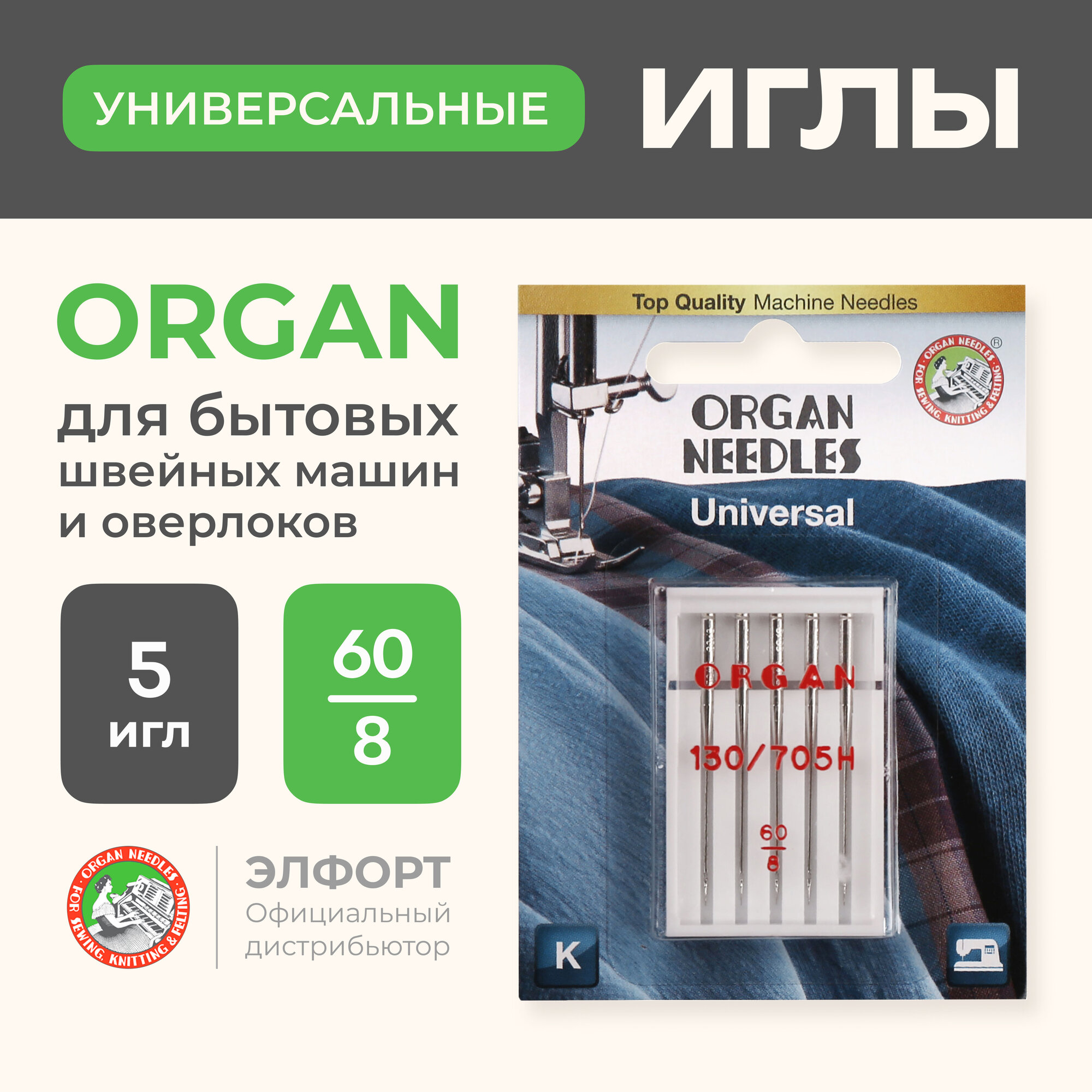ORGAN иглы машинные универсальные № 60, 5 шт Blister