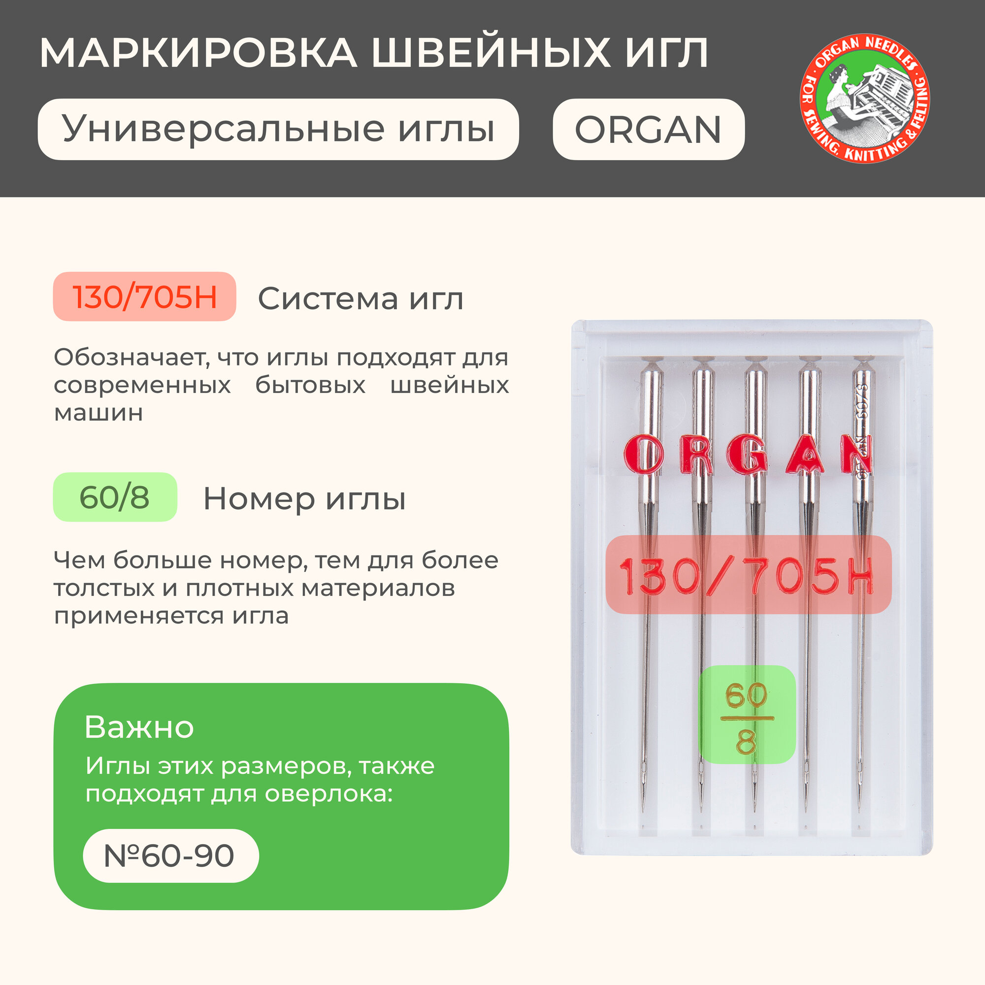 Иглы для бытовых швейных машин, №60, универсальные, ORGAN
