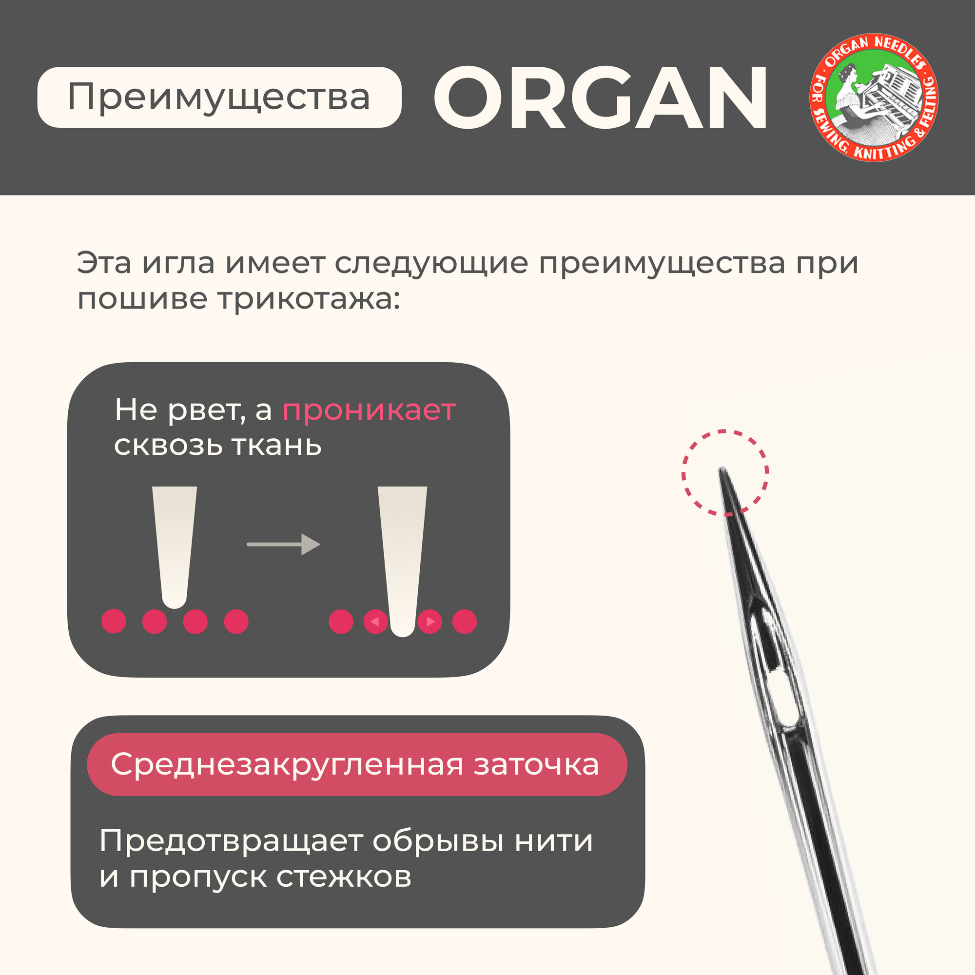 Иглы для швейных машин Organ джерси 5/100 Blister интересное: