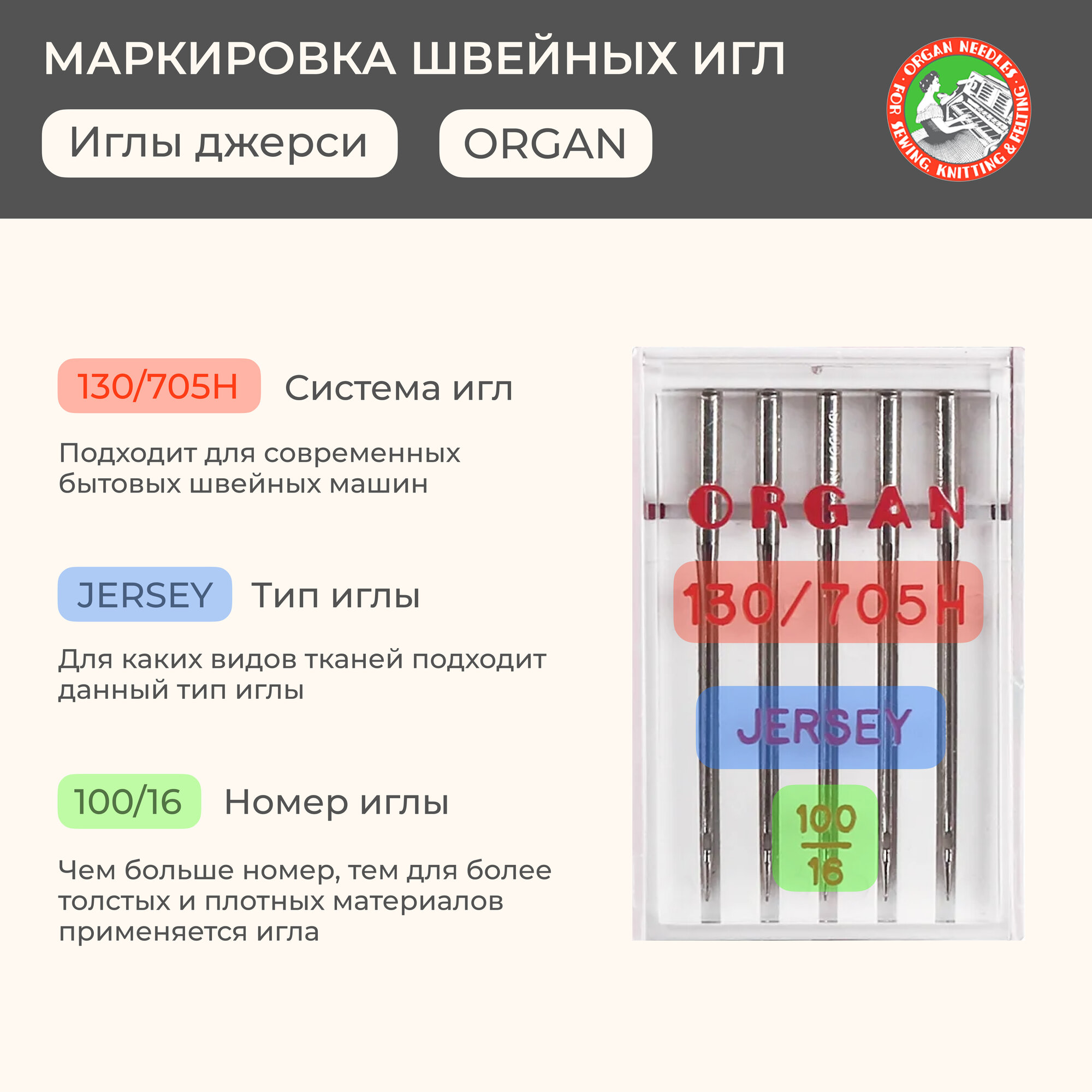 Organ иглы Джерси 5/100 блистер