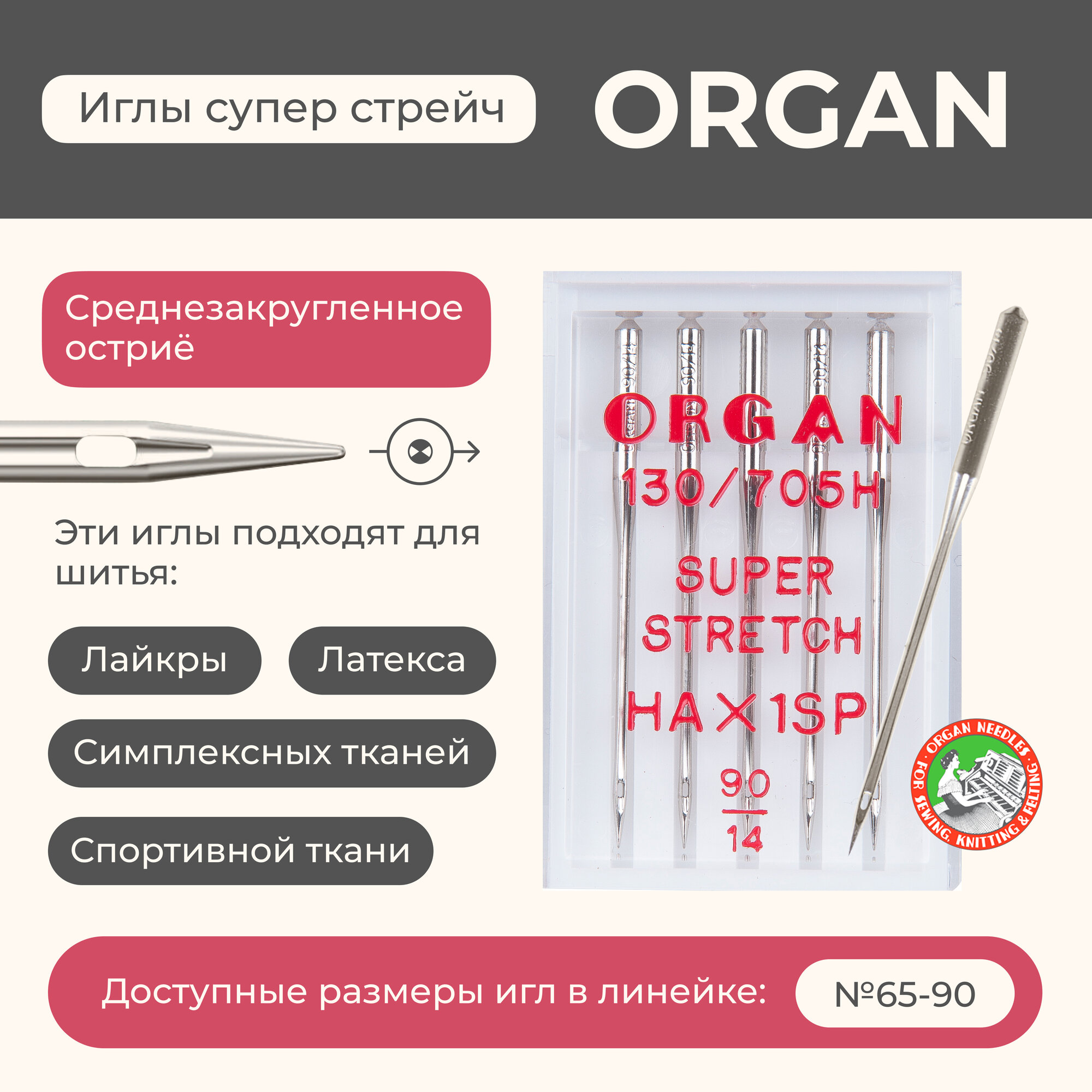 ORGAN Иглы для бытовых швейных машин, для супер-стрейч, №90, 5 шт