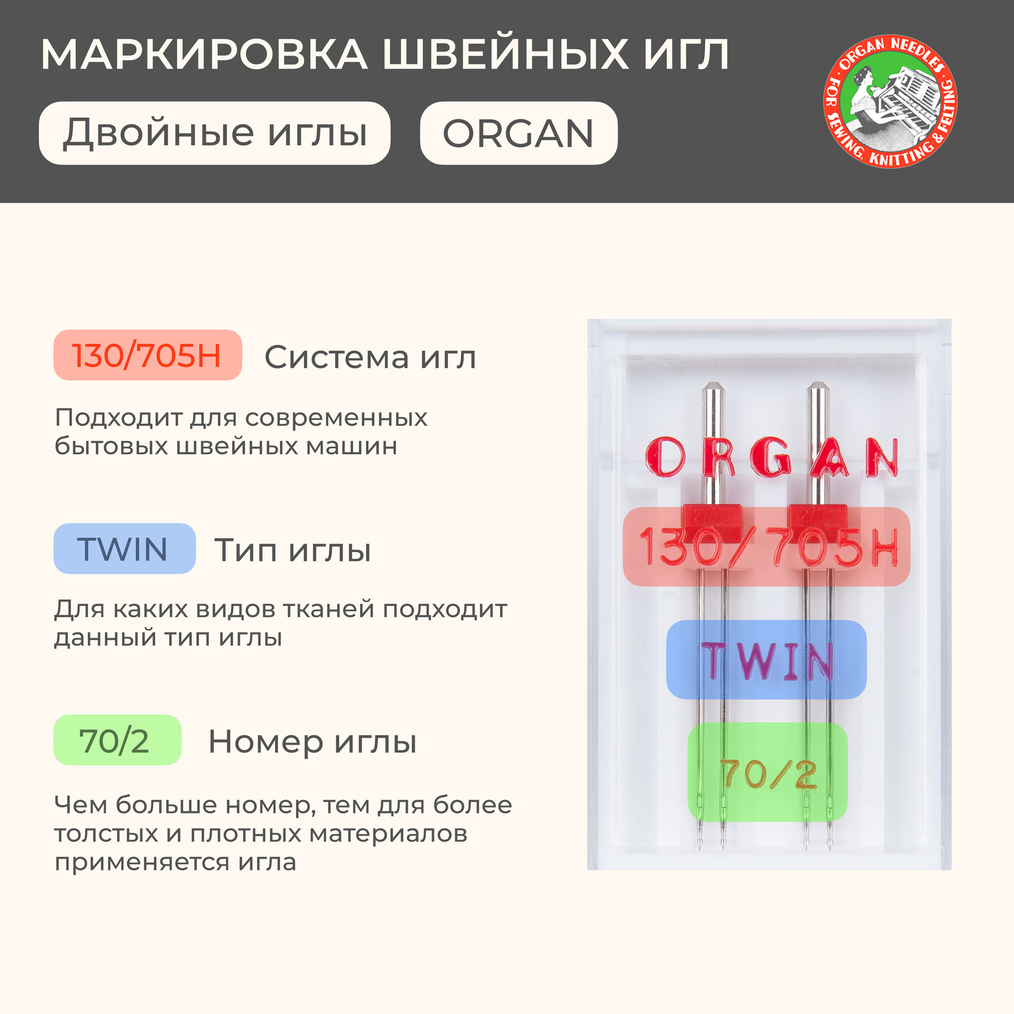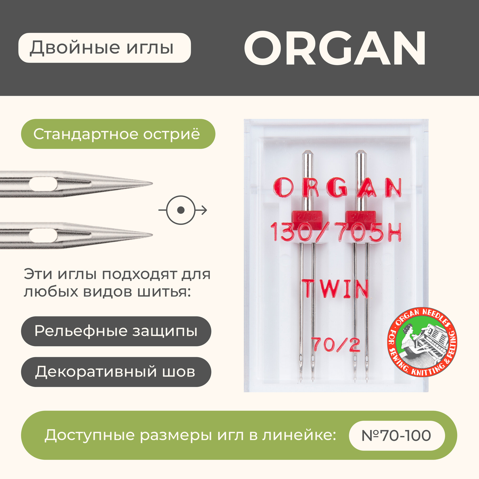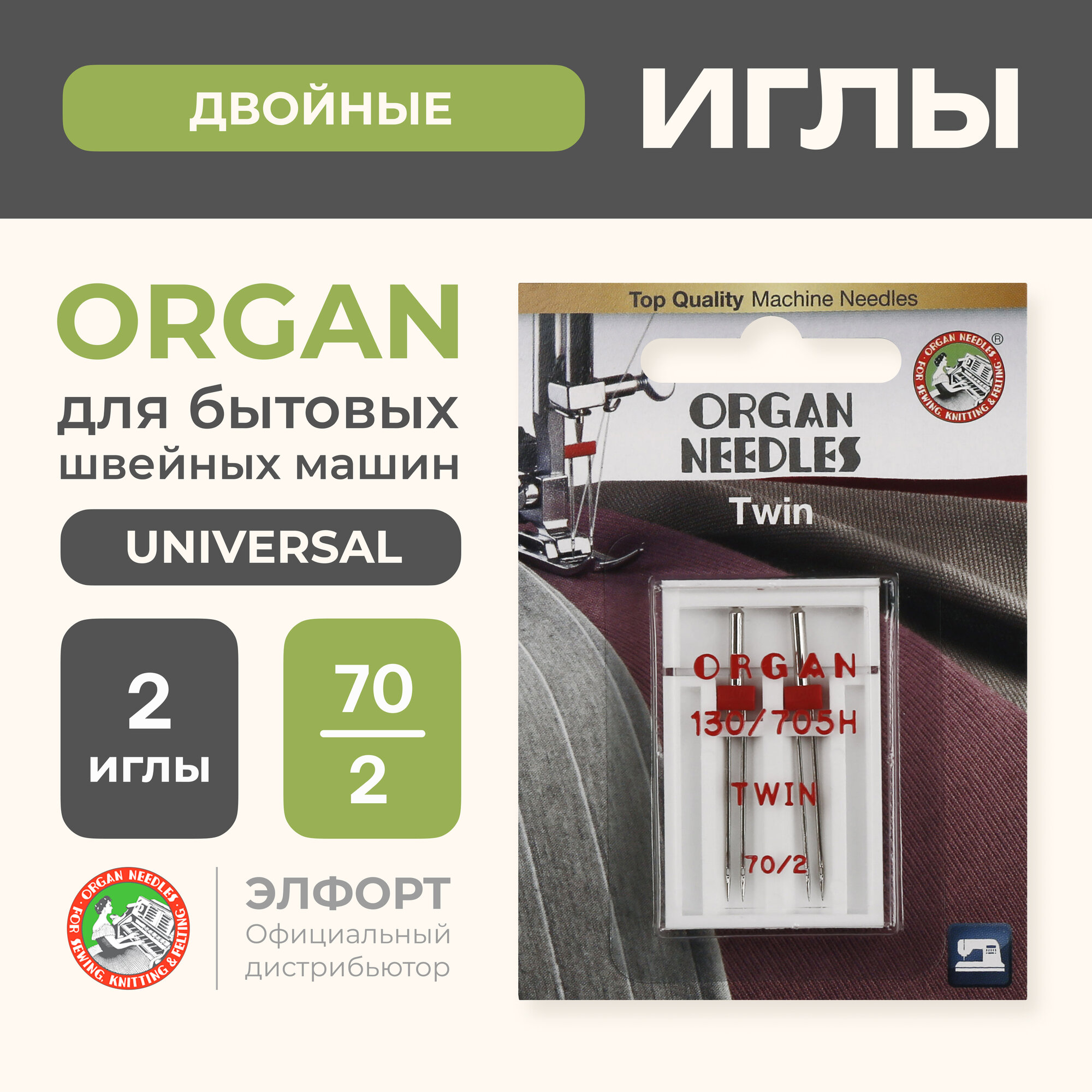 Иглы для швейной машины ORGAN 70/2, 2 шт, в блистере, двойные