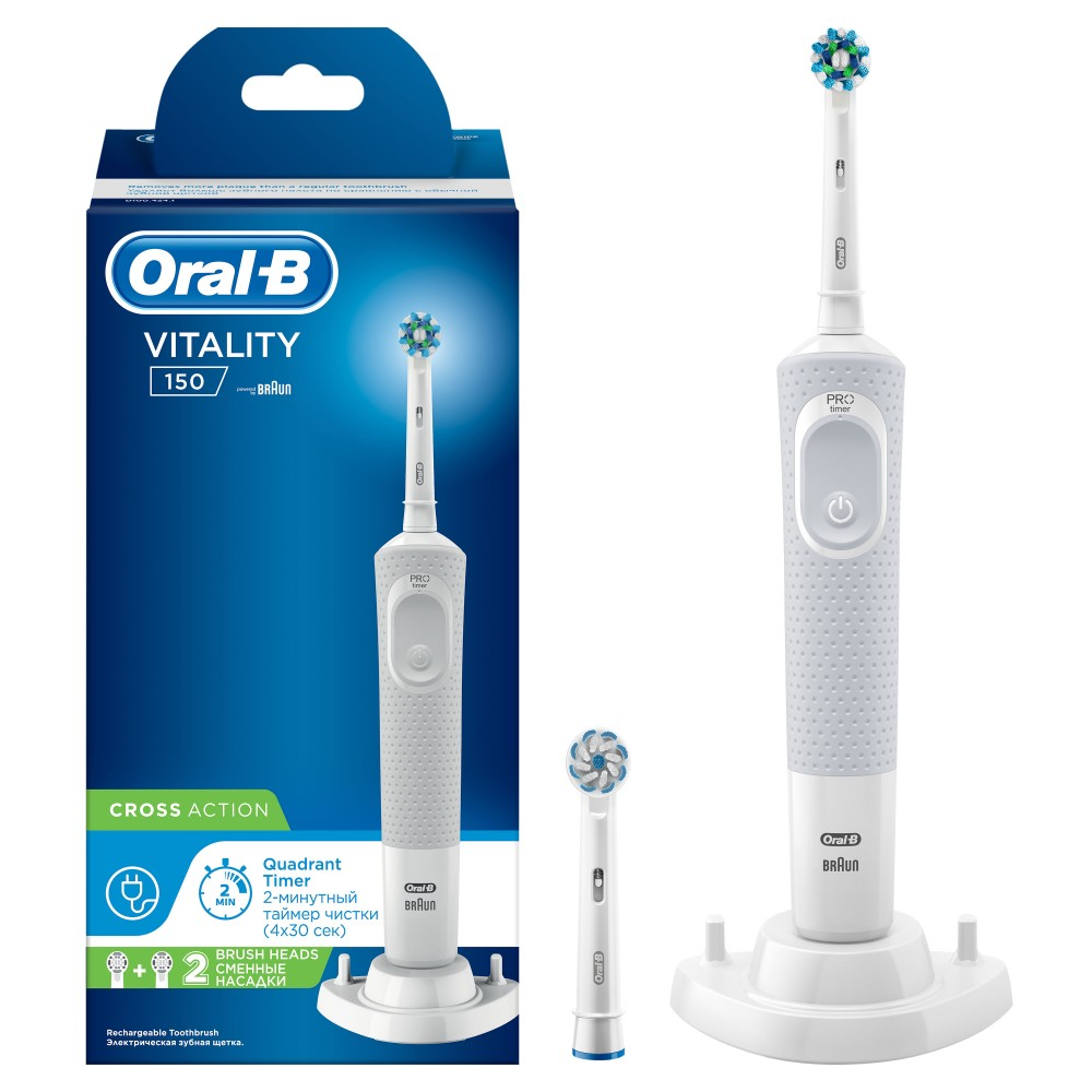 Зубная щетка электрическая орал-би VITALITY 150 тип 3710 со сменными насадками (белая)