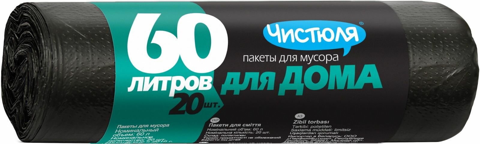 Чистюля Пакеты для мусора, для Дома, 60 л, 20 шт/уп