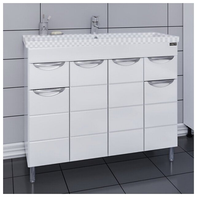 Тумба под раковину, для ванной комнаты с раковиной СаНта Родос 100 с 2 ящиками, ШхГхВ: 96.5х43.5х85 см, цвет: белый интересное: