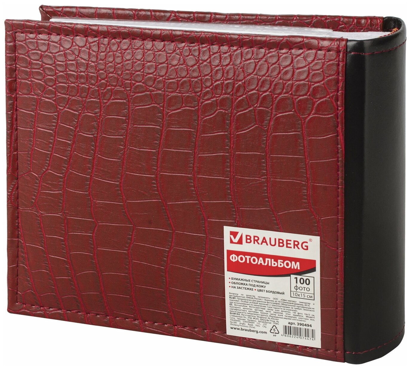 Фотоальбом BRAUBERG на 100 фото 10х15 см, под кожу крокодила, бумажные страницы, бордо, 390494 (арт. 390494)