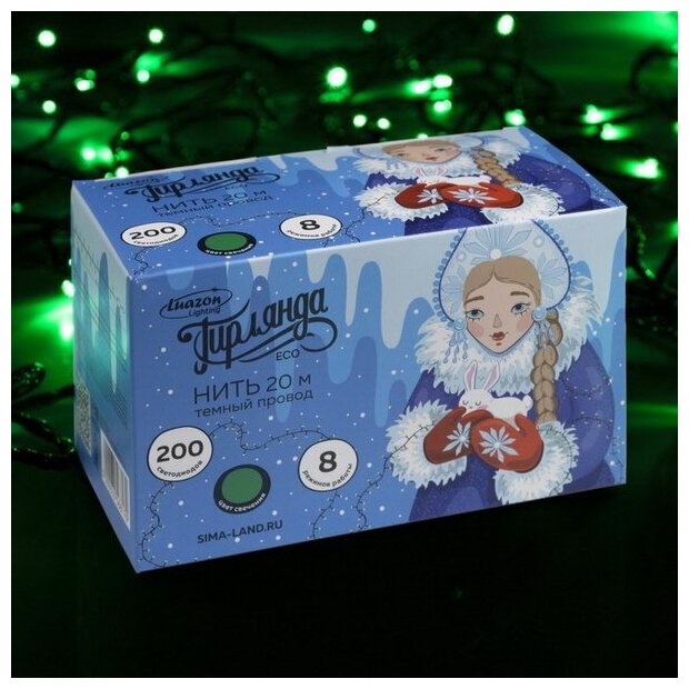 Нить ECO. IP20, 20 м, Н.Т. LED-200-220V, 8 режимов, зеленый 3556817