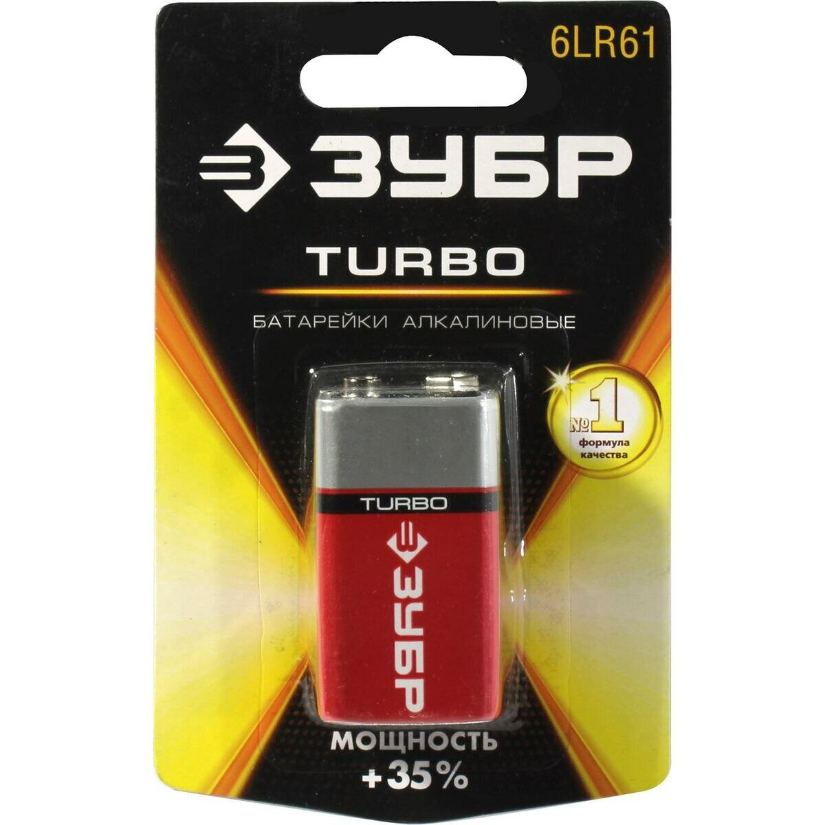 ЗУБР TURBO, 6LR61 (крона), 1 шт, 9 В, алкалиновая батарейка (59219)
