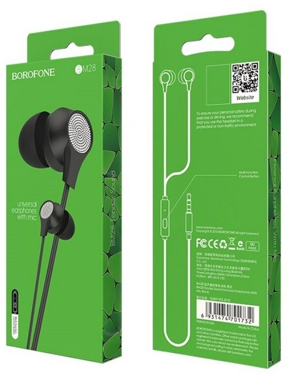 Гарнитура внутриканальная Borofone BM28 Tender sound universal earphones with mic, black