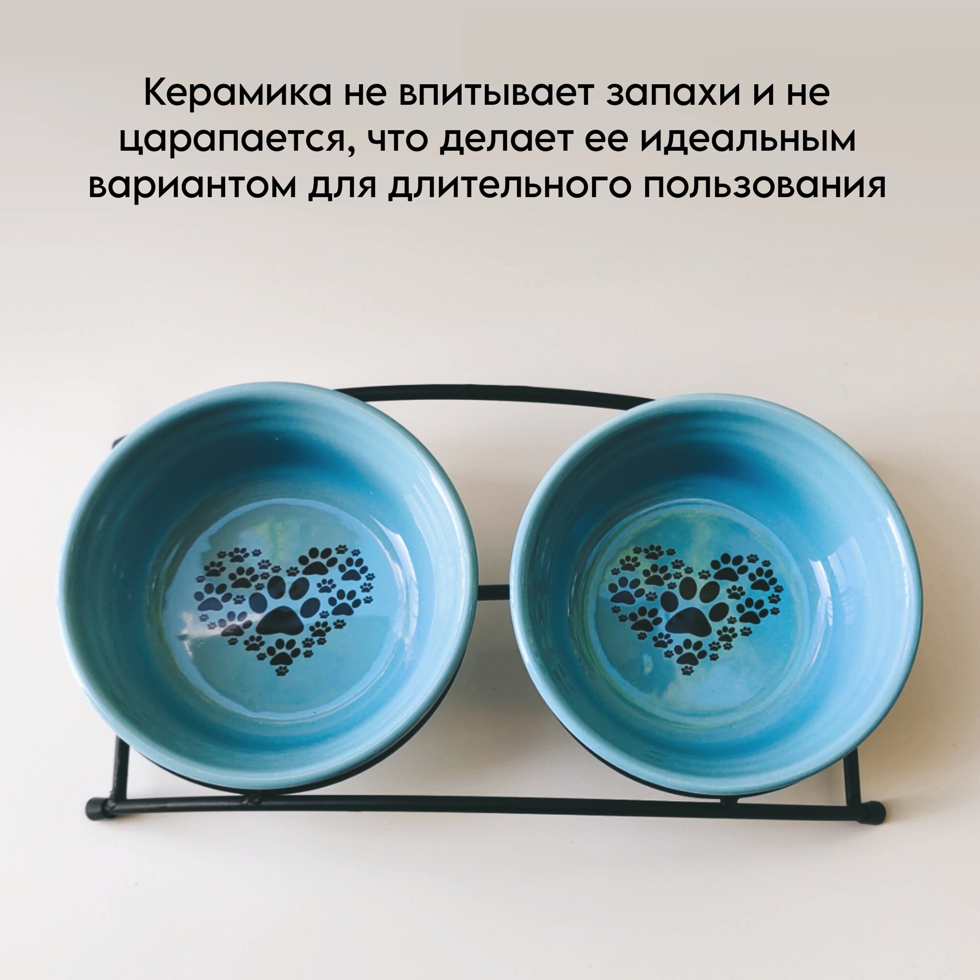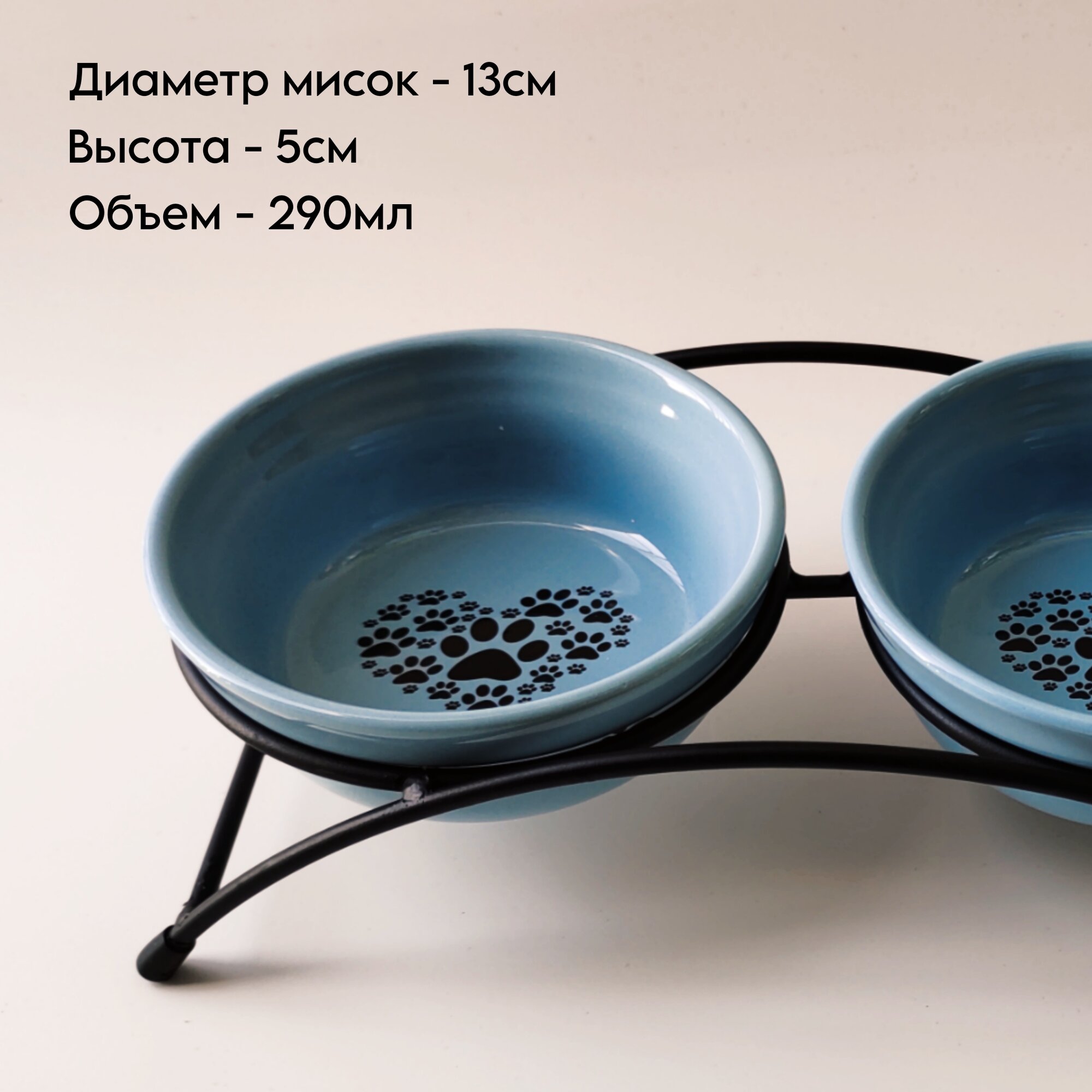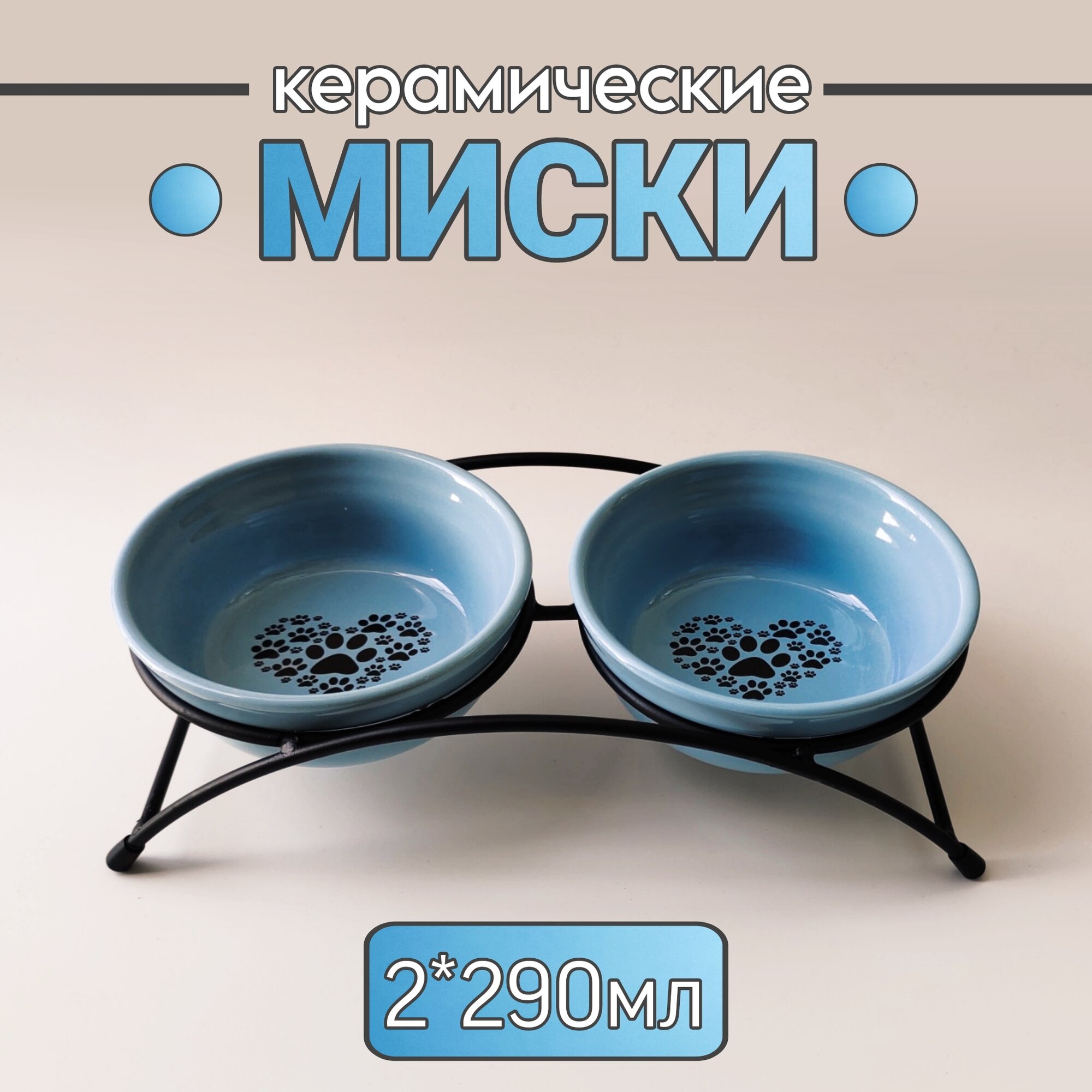 КерамикАрт Миски керамические на подставке для собак и кошек двойные синие, 2x290мл