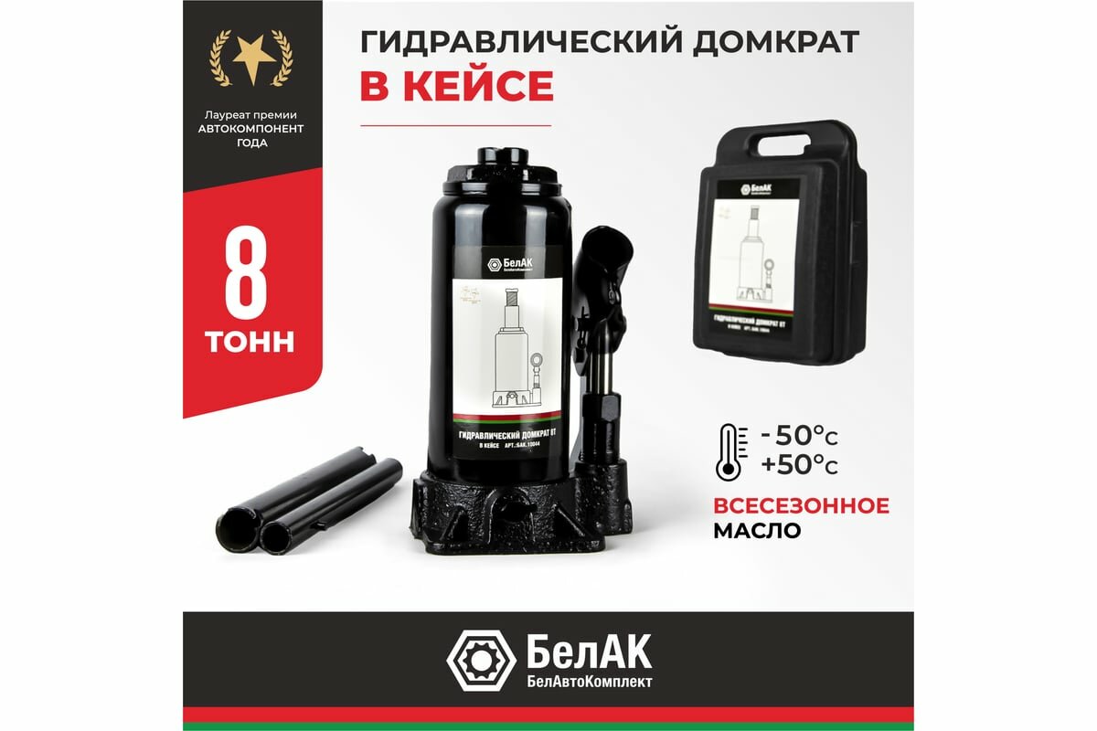 Белавтокомплект БАК10044 Домкрат бутыочный гидравический 8т в кейсе БеАК