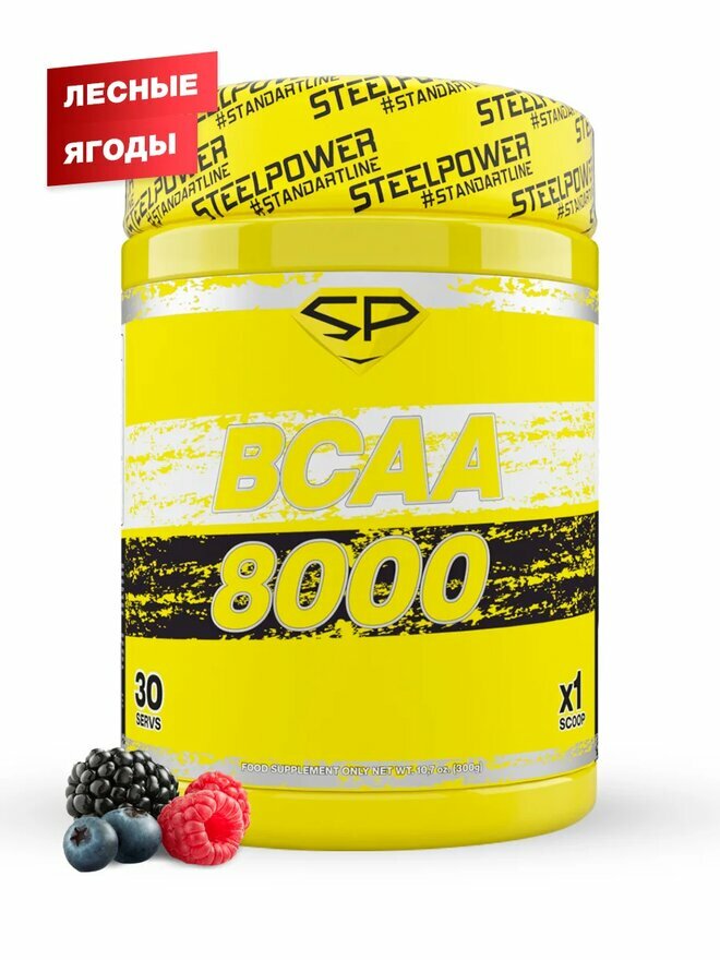 Купить Аминокислоты STEELPOWER BCAA 8000, 300 гр, Лесные ягоды, 30 порций / ВСАА 2:1:1 (БЦАА 2:1:1) для похудения без сахара, без углеводов