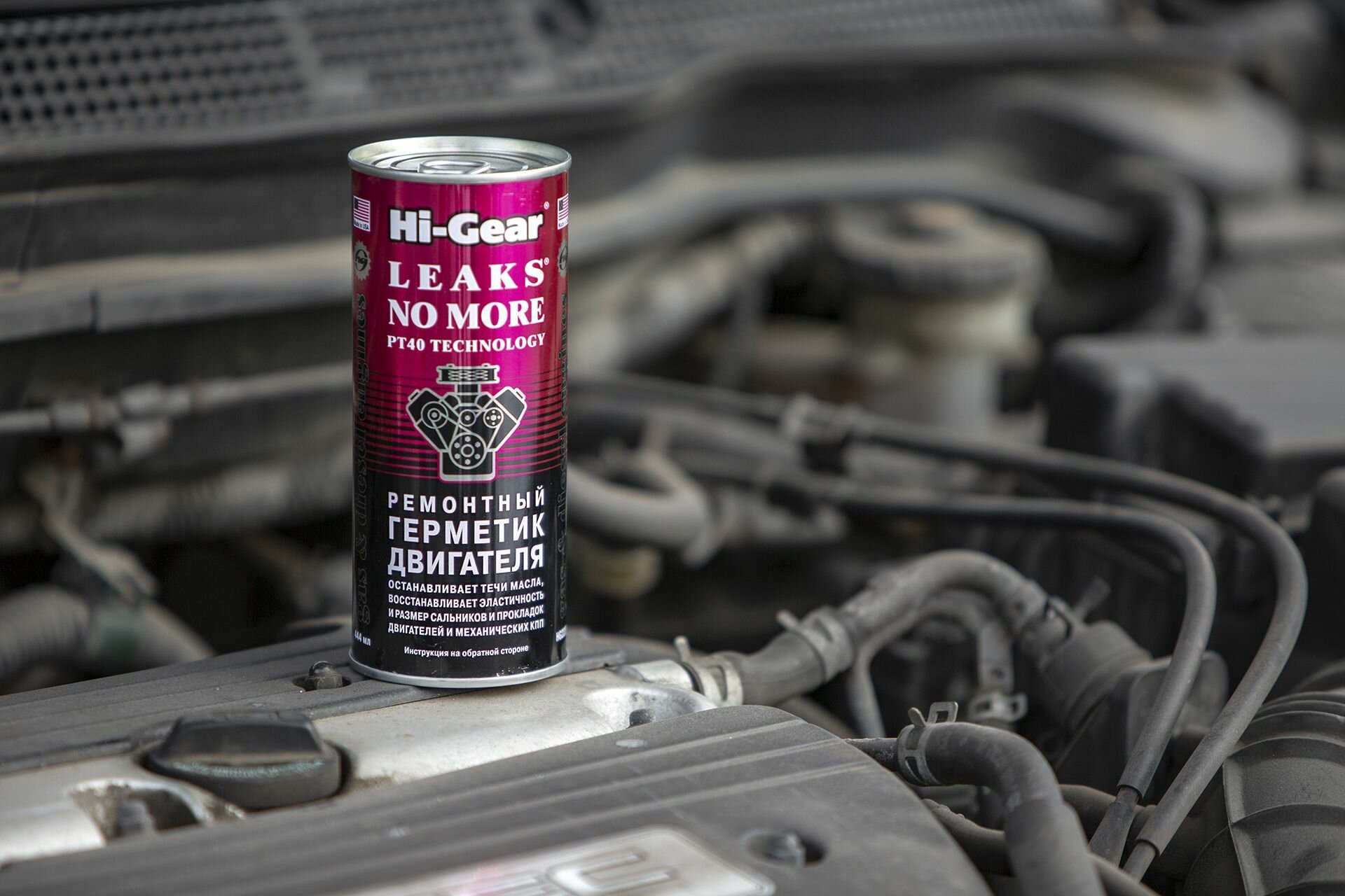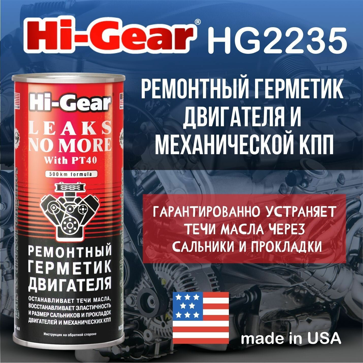 Герметик масляной системы Hi-Gear Leaks No More With PT40, для бензиновых, дизельных двигателей и МКПП, банка 444мл, арт. HG2235