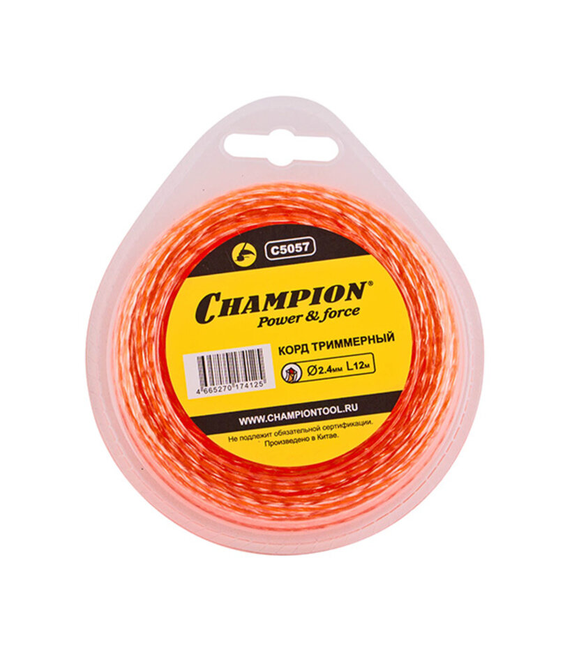 Леска для триммера CHAMPION C5057 Square Twist DUO 2.4мм *12м (витой квадрат)