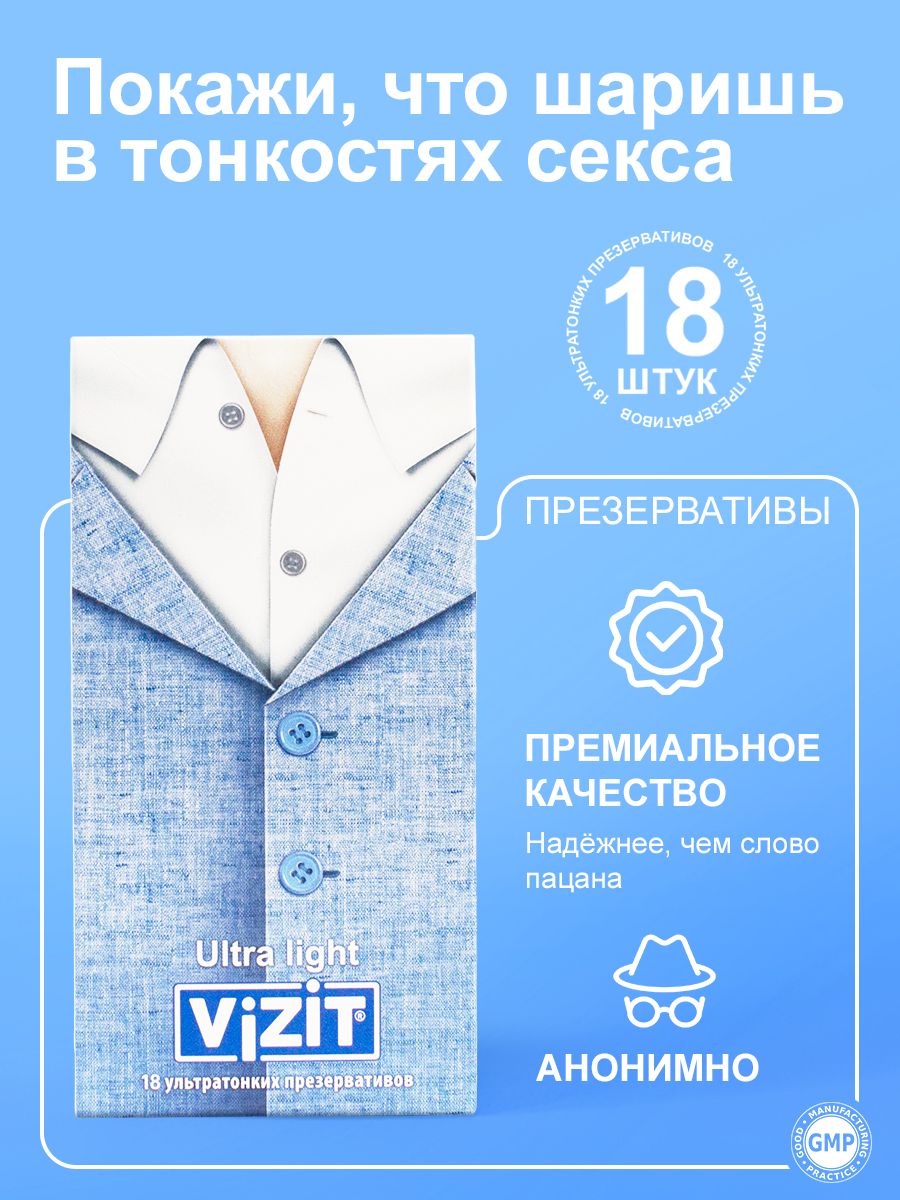 Ниже Вы можете прочитать отзывы на VIZIT Ultra light Презервативы Ультратонкие, 18 шт, ознакомится с подробными характеристиками, посмотреть интересные обзоры и фотографии на VIZIT Ultra light Презервативы Ультратонкие, 18 шт.