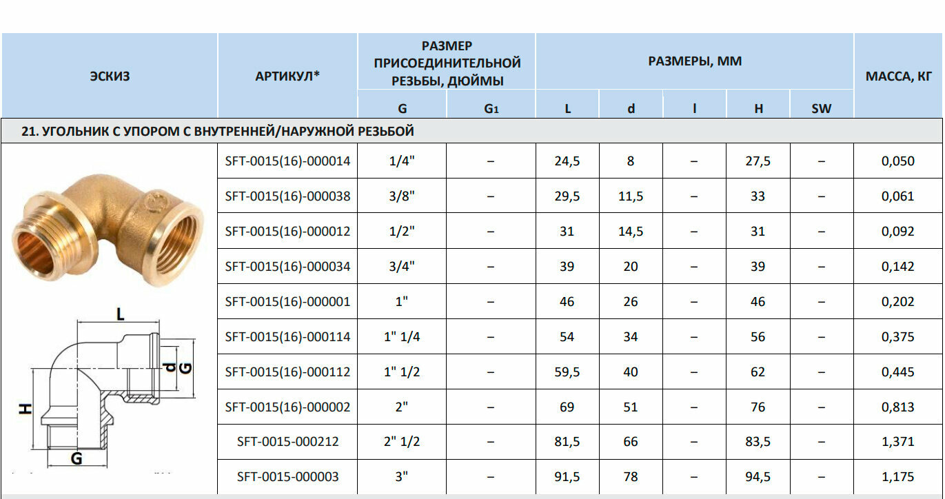 SFT-0016-000034 STOUT Угольник с упором НВ никелированный 3/4"