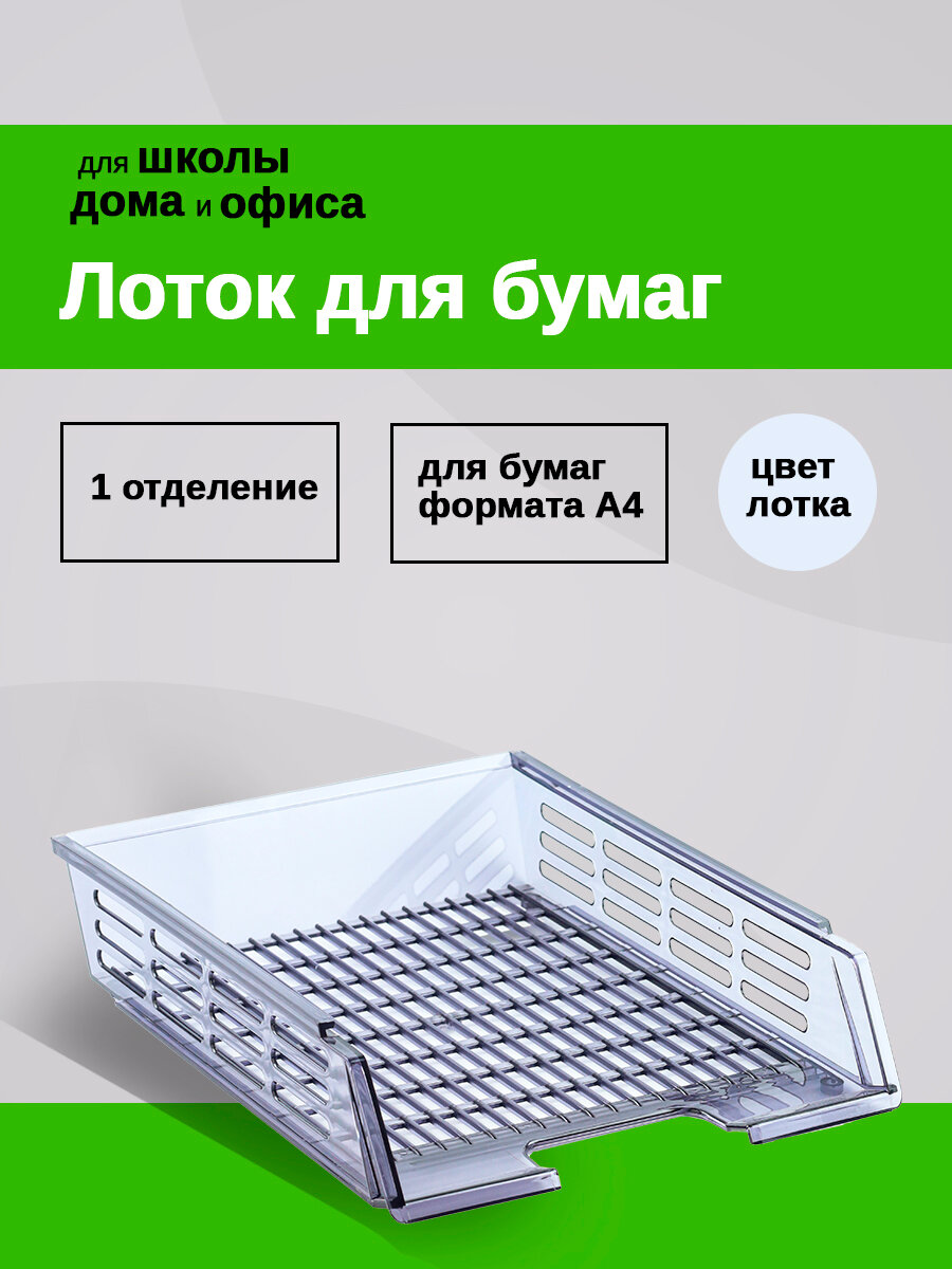 Лоток горизонтальный для бумаг с пазами, А4 (360х270х75 мм), сетчатый, прозрачный, ЛТ77