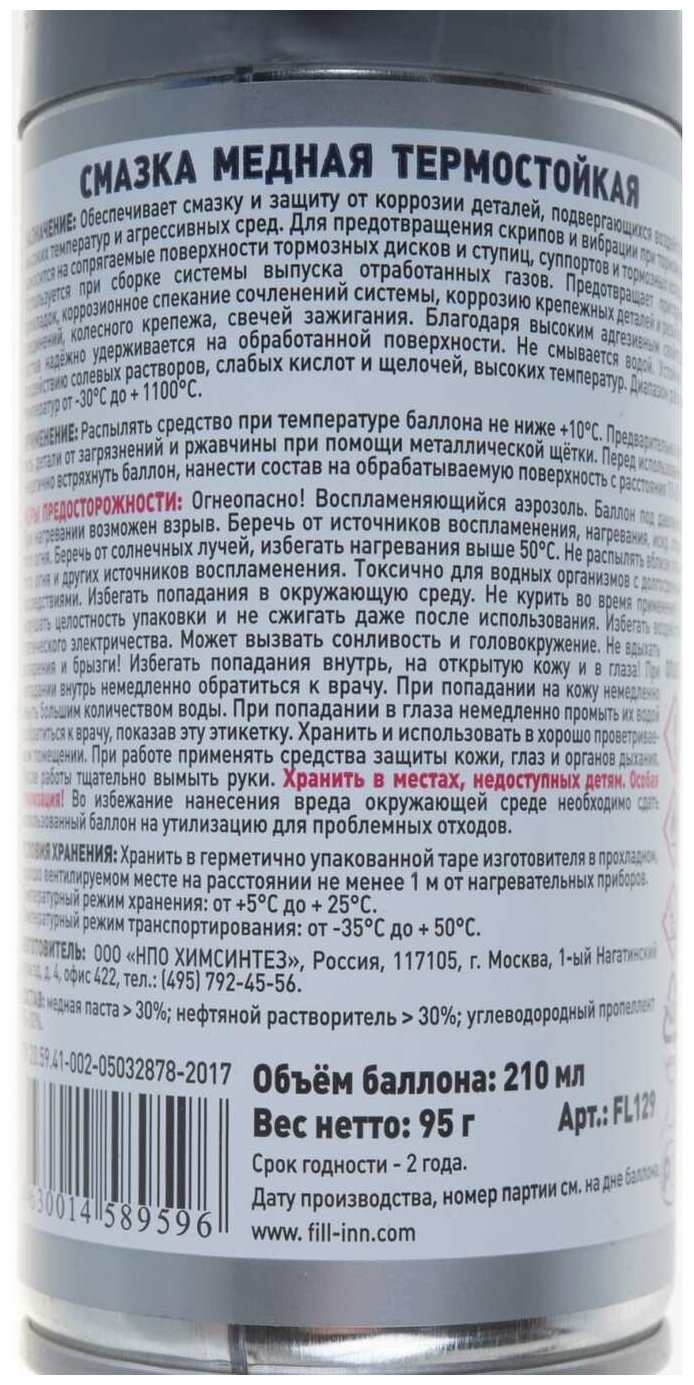 FL129 Смазка медная термостойкая, 210 мл (аэрозоль)