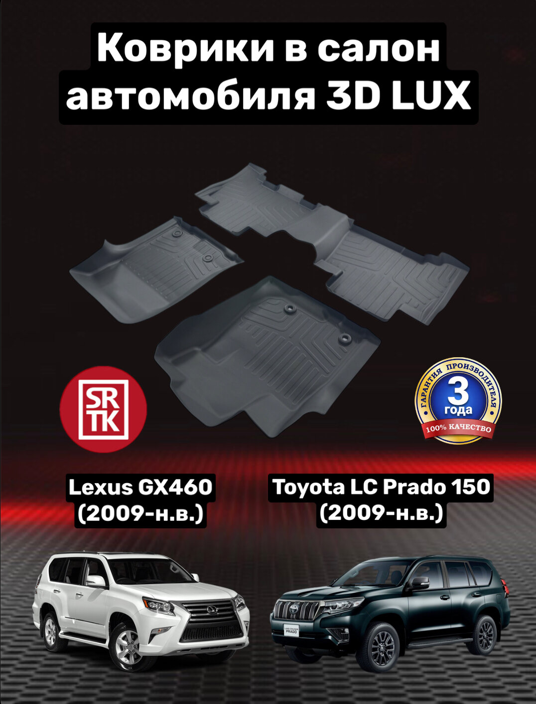 Ковры резиновые 3D LUX Тойота Ленд Крузер Прадо 150 (2009-)/Лексус ДжиИкс 460/Toyota Land Cruise Prado 150/Lexus GX460 SRTK (Саранск) комплект в салон
