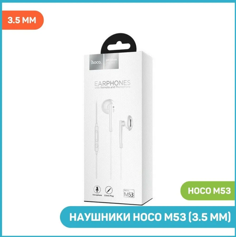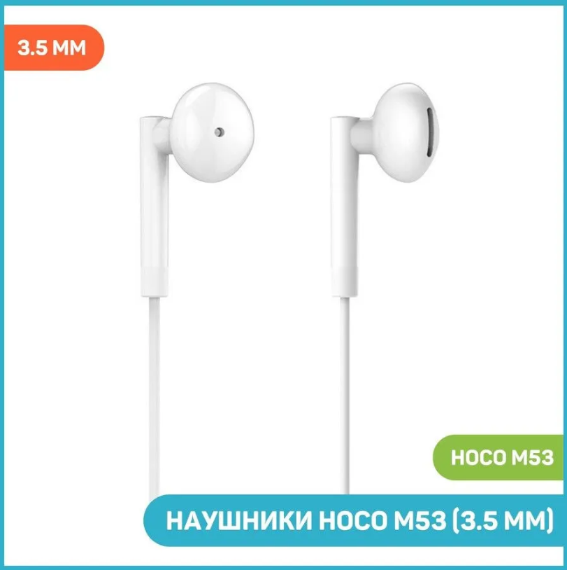 Наушники Hoco M53 Exquisite, Jack 3.5mm, 1.2 м, белый, контроллер с микрофоном