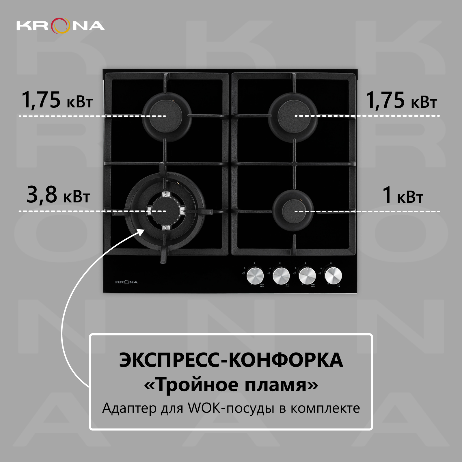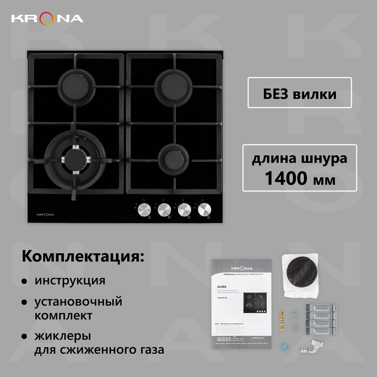 Krona Alma 60 WH Газовая варочная поверхность .
