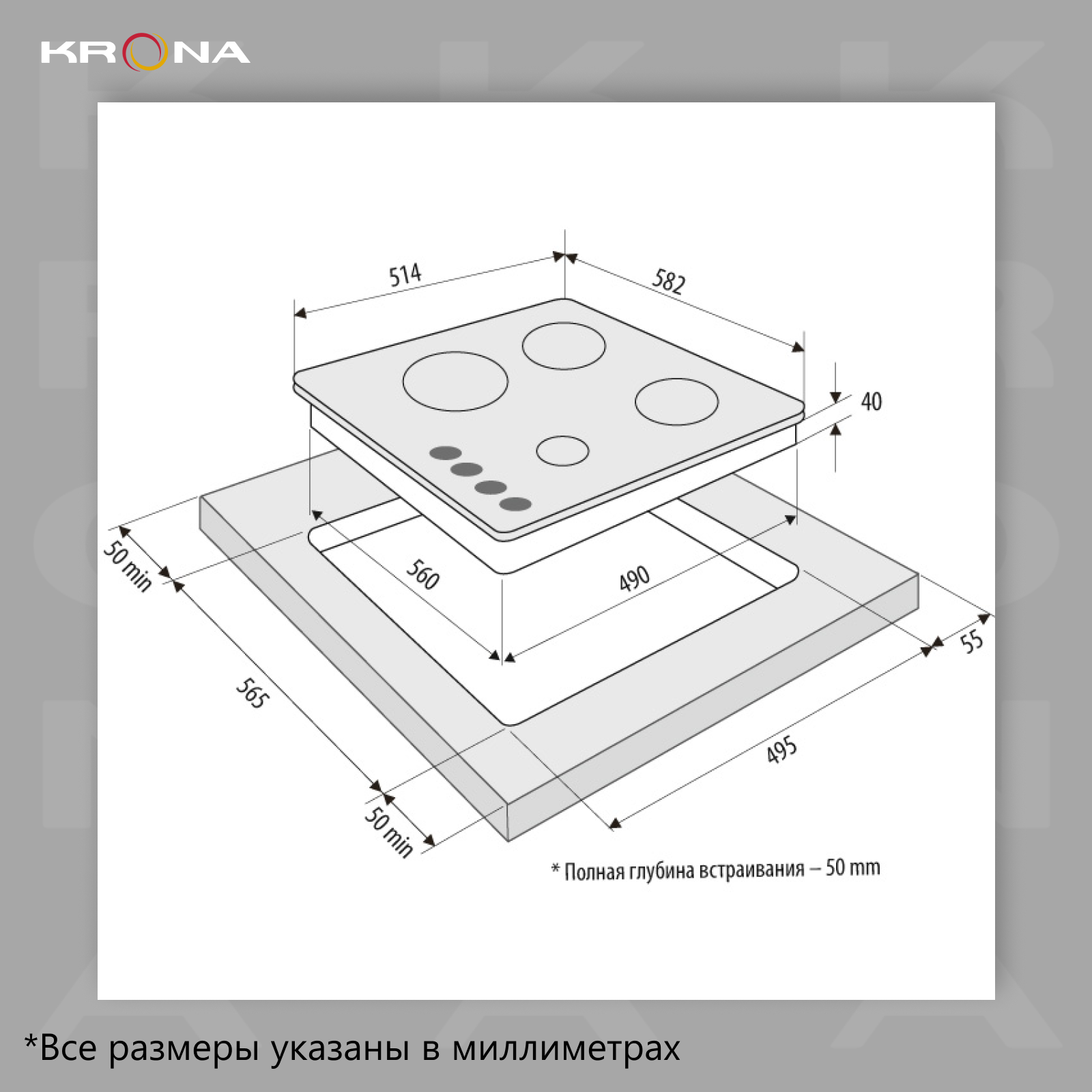 Варочная панель Krona ALMA 60 WH 514x582x100 Белый