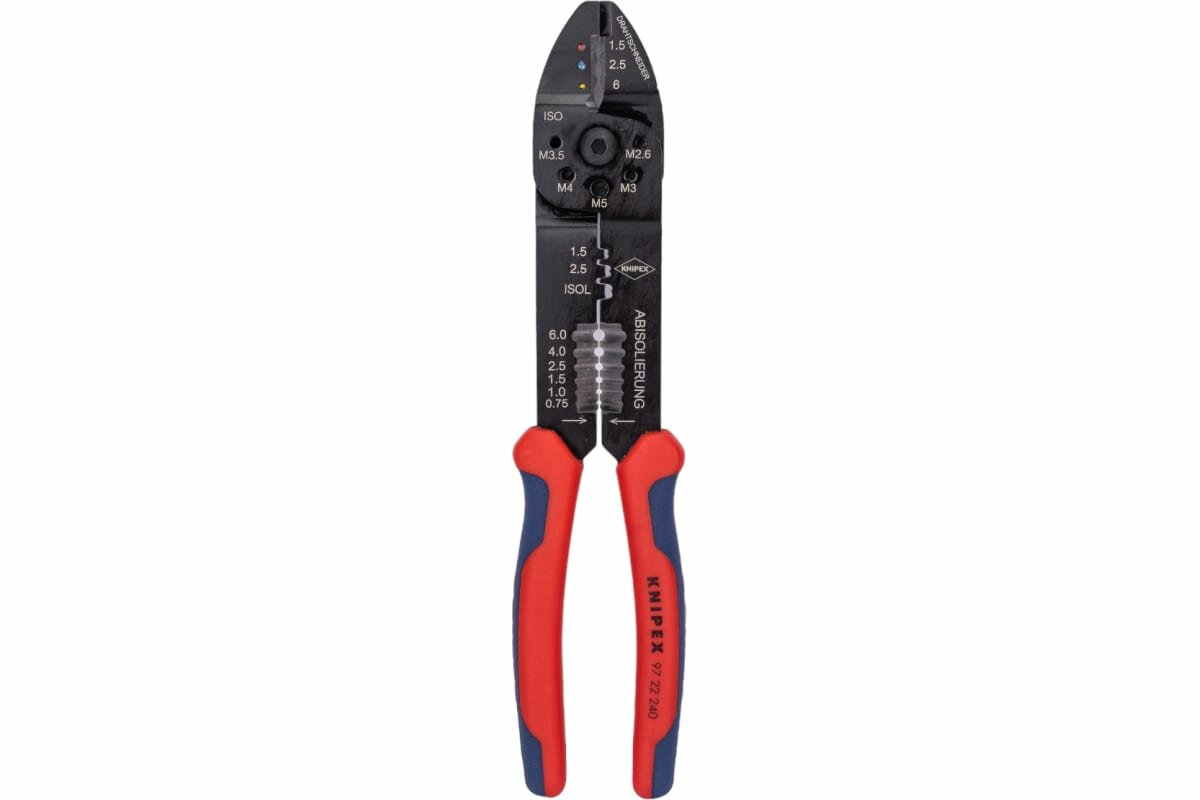 Пресс-клещи для резки и зачистки кабеля KNIPEX KN-9722240, опрессовки кабельных наконечников и штекеров, 3 гнезда, обжим кабельных наконечников с изолятором и кабельных соединителей: 0.5-6.0 мм² (AWG 20 - 10), j, обжим штекеров открытых неизолированных ши