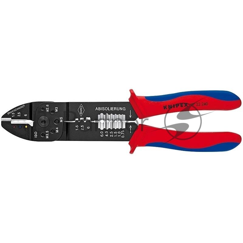 Пресс-клещи для резки и зачистки кабеля, опрессовки наконечников и штекеров, 240 мм, двухкомпонентные рукоятки, KNIPEX KN9722240 (1 шт.)
