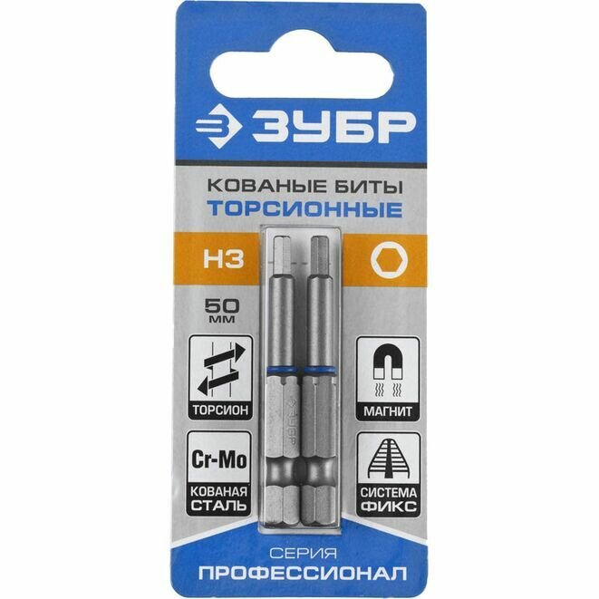 Купить Биты ЗУБР ″Профессионал″, торсионные кованые, обточенные, HEX3, 2шт (26017-3-50-2)
