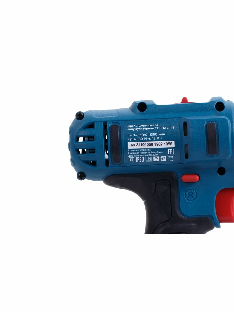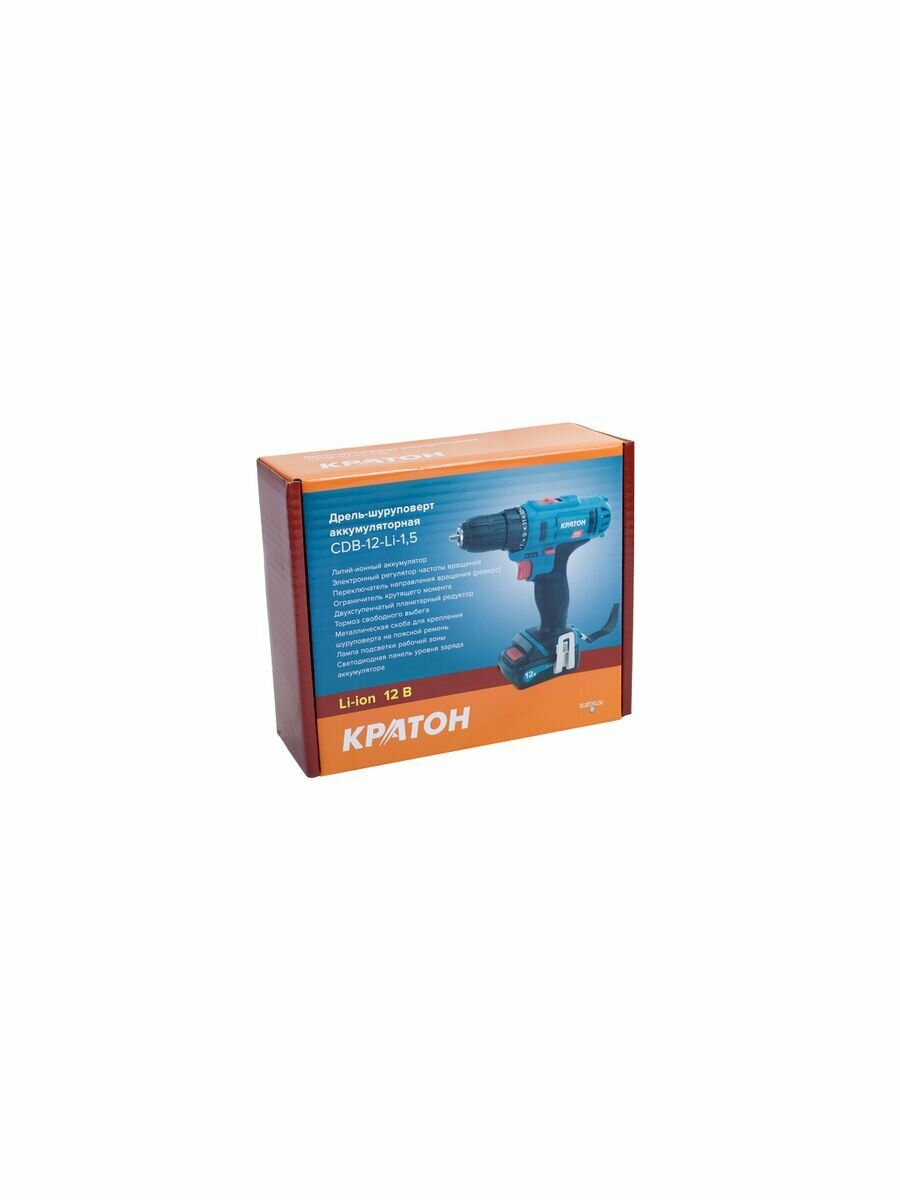 Дрель-шуруповерт кратон CDB-12-Li-1,5, 1.5Ач, без ЗУ, с одним аккумулятором [3 11 01 058]