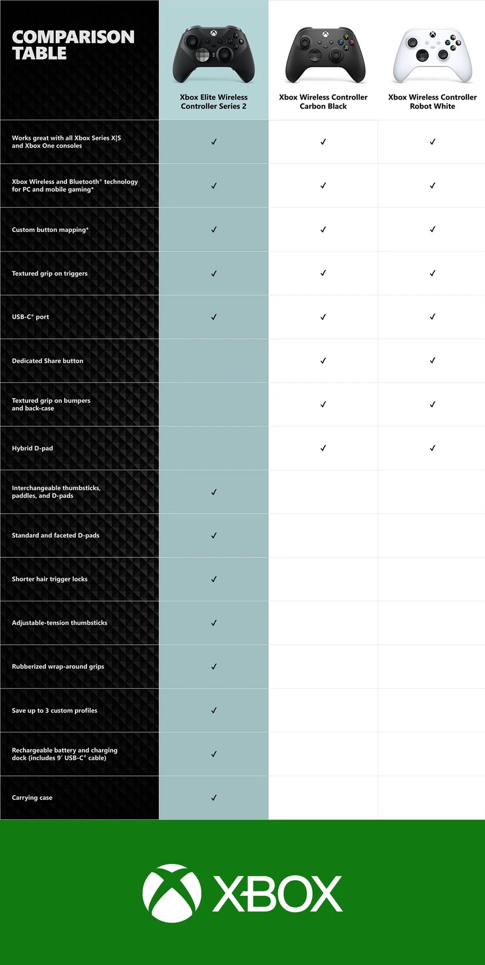 • Более чёткий щелчёк задних кнопок. • Покрытие на триггерах и задних кнопках теперь не даёт пальцам скользить. • Как будто вибрация теперь более деликатная, но я не уверен. • Новая кнопка, которую в некоторых играх можно будет переназначить под что-нибудь более полезное. • USB Type-C. |