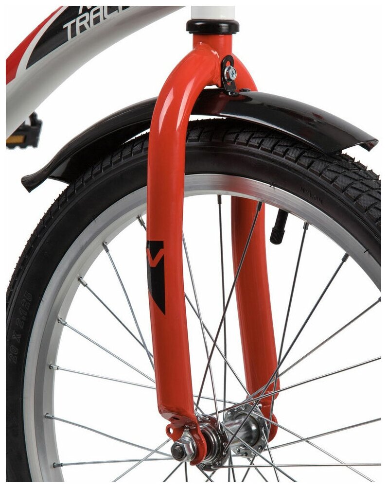 Велосипед Novatrack Strike 20" (2020) (Велосипед NOVATRACK 20" STRIKE белый-красный, тормоз нож, крылья корот, защита А-тип)