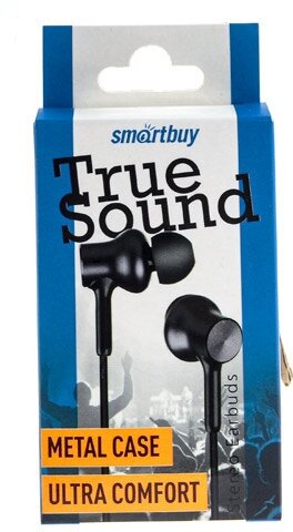 Гарнитура вкладыши SmartBuy TRUE SOUND, черная, металлический корпус 3.5мм, 1,2м (SBH-108) - 1 шт.