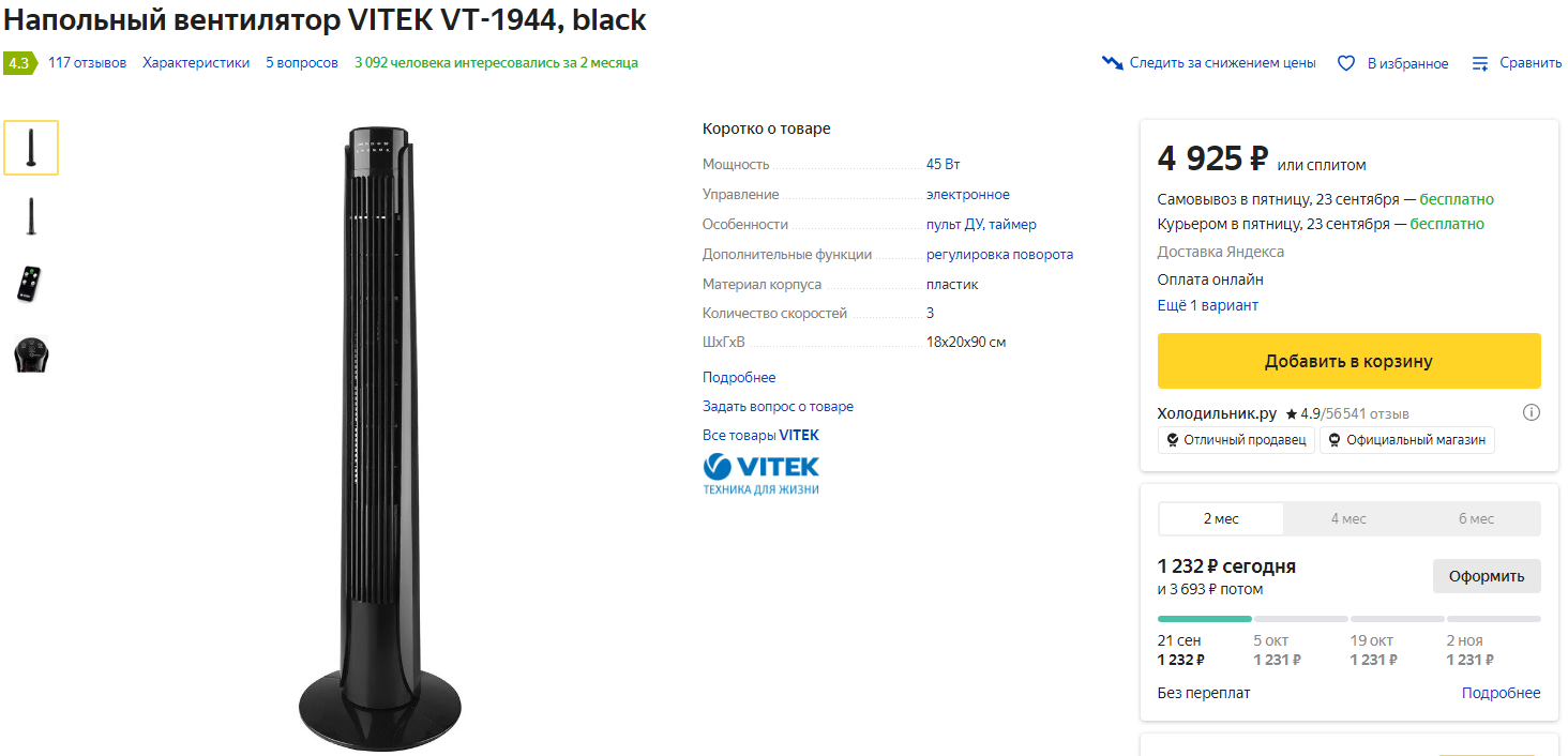 СохранитьИтак, мы решили сравнить, где же дешевле купить Вентилятор колонна Vitek VT-1944, для этого мы взяли Яндекс Маркет и 2 других маркетплейса е-Каталог и Авито, результаты сравнения цен на Вентилятор колонна Vitek VT-1944 ниже.